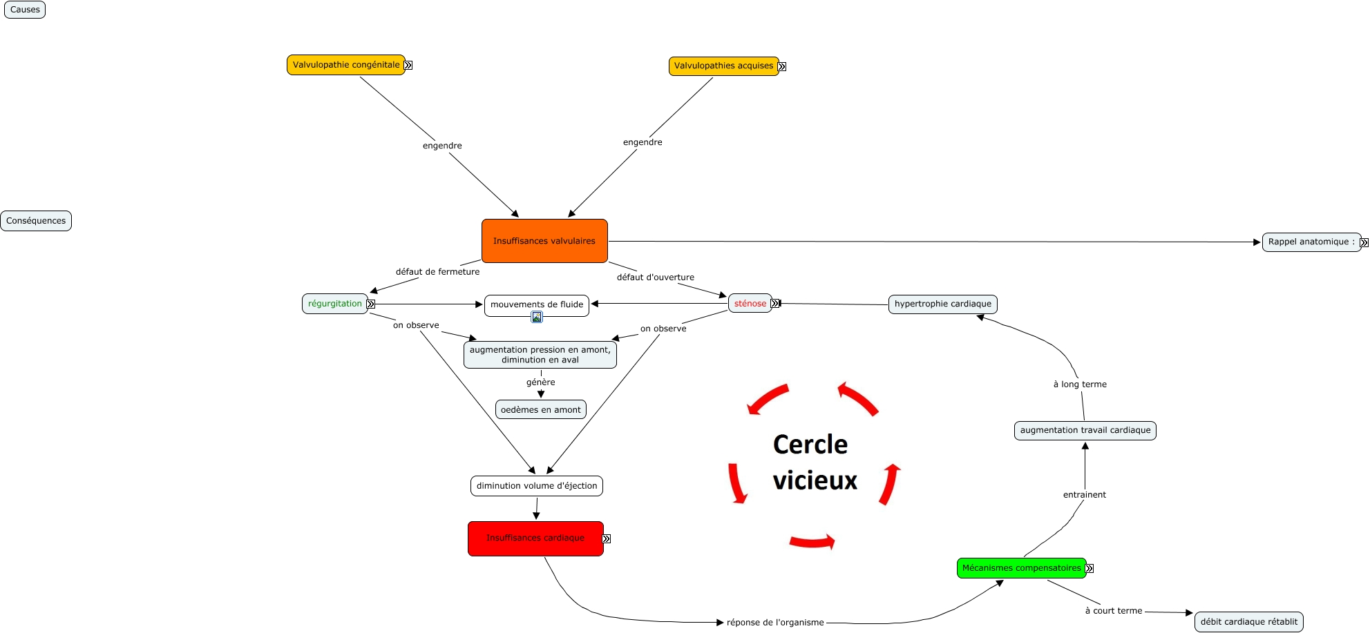 Cette carte de concepts créée avec IHMC CmapTools traite de: Insuffisance valvulaire 3, Causes intrinsèques soit alimentation, angiotensine 1 clivé par enzyme de conversion angiotensine 2, Valve Mitral Ventricule Gauche, augmentation pression OG augmentation pression pulmonaire, angiotensine 2 entraine sécrétion de aldostérone, Causes intrinsèques soit manque d'activité physique, Strucutre du coeur Septum cardiaque, régurgitation mouvements de fluide, cellules pacemaker effet bathmotrope +, Insuffisances cardiaque réponse de l'organisme Mécanismes compensatoires, besoins physiologiques consommation nutriments, besoins physiologiques consommation oxygène, Valve Tricupside Ventricule droit, Rappel Anatomique : Sac pericardique :, Strucutre du coeur Quatre cavités :, Insuffisances valvulaires défaut d'ouverture sténose, Rappel Anatomique : Strucutre du coeur, diminution volume d'éjection Insuffisances cardiaque, augmentation travail VG hypertrophie VG, cellules pacemaker effet dromotrope +