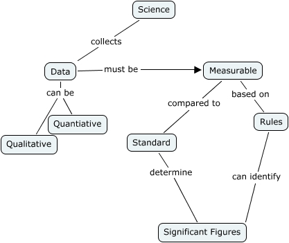 This Concept Map, created with IHMC CmapTools, has information related to: Science, Data can be Qualitative, Standard determine Significant Figures, Rules can identify Significant Figures, Data can be Quantiative, Measurable based on Rules, Measurable compared to Standard, Data must be Measurable, Science collects Data