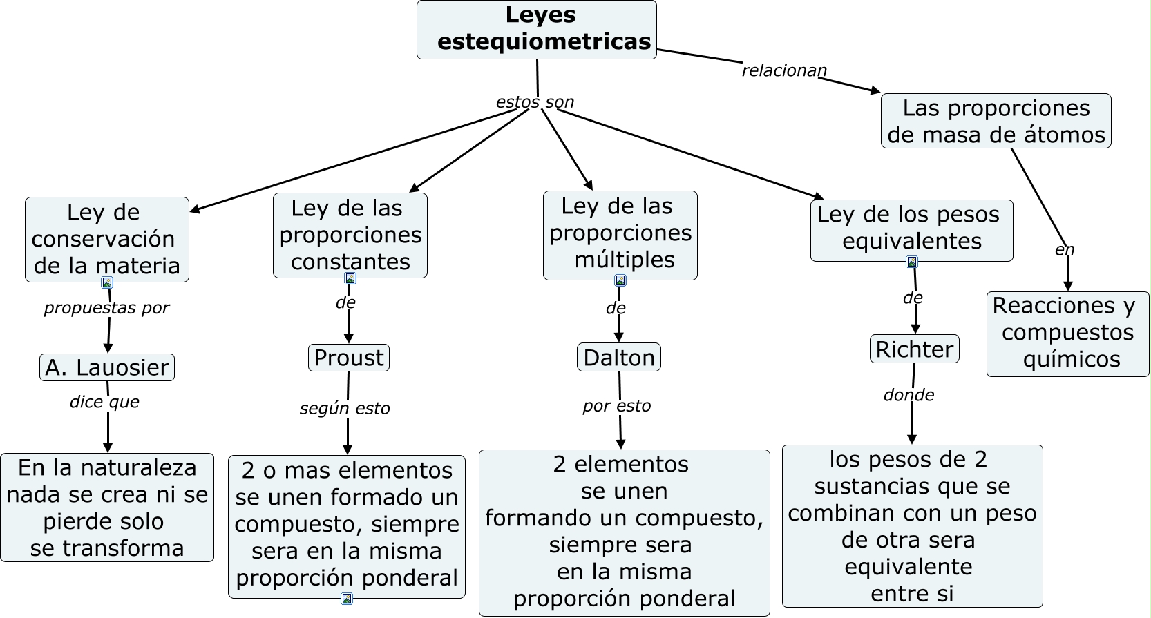 Este Cmap, tiene información relacionada con: Unidad 4.2 Leyes ponderales y Estequiometría, Leyes estequiometricas estos son Ley de las proporciones constantes, Ley de las proporciones constantes de Proust, Las proporciones de masa de átomos en Reacciones y compuestos químicos, Ley de conservación de la materia propuestas por A. Lauosier, Leyes estequiometricas estos son Ley de las proporciones múltiples, Richter donde los pesos de 2 sustancias que se combinan con un peso de otra sera equivalente entre si, Ley de los pesos equivalentes de Richter, Dalton por esto 2 elementos se unen formando un compuesto, siempre sera en la misma proporción ponderal, Leyes estequiometricas relacionan Las proporciones de masa de átomos, Leyes estequiometricas estos son Ley de los pesos equivalentes, Leyes estequiometricas estos son Ley de conservación de la materia, Proust según esto 2 o mas elementos se unen formado un compuesto, siempre sera en la misma proporción ponderal, Ley de las proporciones múltiples de Dalton, A. Lauosier dice que En la naturaleza nada se crea ni se pierde solo se transforma