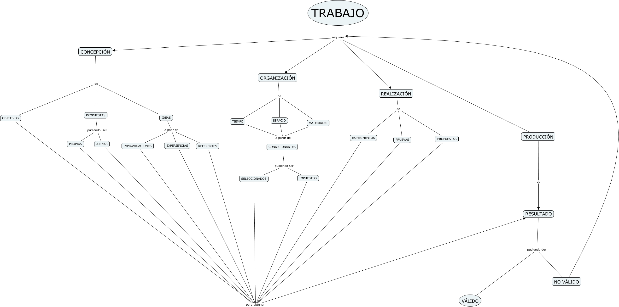 Este Cmap, tiene información relacionada con: Nuria Dasí, OBJETIVOS para obtener RESULTADO, PROPUESTAS pudiendo ser AJENAS, PRODUCCIÓN de RESULTADO, IMPROVISACIONES para obtener RESULTADO, EXPERIENCIAS para obtener RESULTADO, CONDICIONANTES pudiendo ser IMPUESTOS, CONCEPCIÓN de PROPUESTAS, TIEMPO a partir de CONDICIONANTES, ORGANIZACIÓN de MATERIALES, NO VÁLIDO requiere REALIZACIÓN, NO VÁLIDO requiere CONCEPCIÓN, NO VÁLIDO requiere ORGANIZACIÓN, IDEAS a patir de REFERENTES, PROPUESTAS pudiendo ser PROPIAS, PRUEVAS para obtener RESULTADO, TRABAJO requiere PRODUCCIÓN, CONCEPCIÓN de IDEAS, IDEAS a patir de EXPERIENCIAS, CONDICIONANTES pudiendo ser SELECCIONADOS, ORGANIZACIÓN de ESPACIO