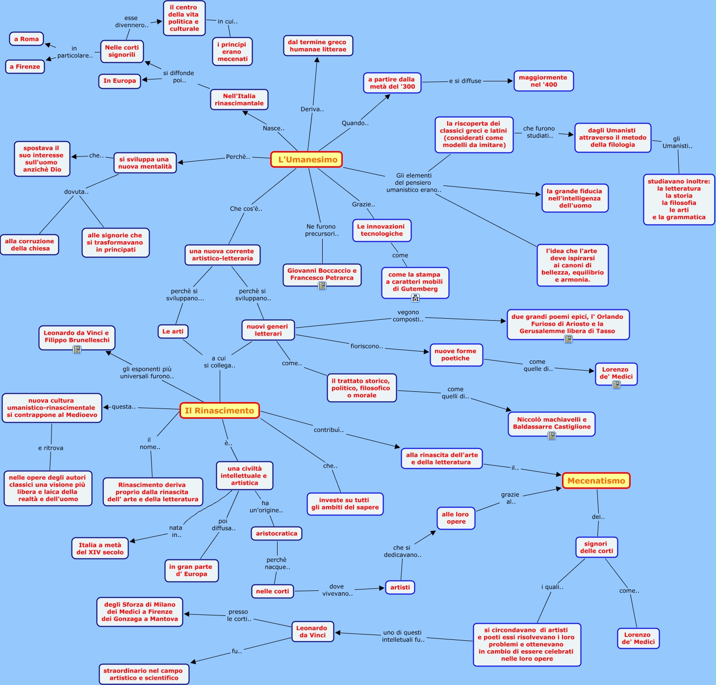 Questa Cmap, creata con IHMC CmapTools, contiene informazioni relative a: Umanesimo e Rinascimento, la riscoperta dei classici greci e latini (considerati come modelli da imitare) Gli elementi del pensiero umanistico erano.. la grande fiducia nell'intelligenza dell'uomo, signori delle corti come.. Lorenzo de' Medici, Il Rinascimento questa.. nuova cultura umanistico-rinascimentale si contrappone al Medioevo, Il Rinascimento contribuì.. alla rinascita dell'arte e della letteratura, Le innovazioni tecnologiche come come la stampa a caratteri mobili di Gutemberg, Leonardo da Vinci presso le corti.. degli Sforza di Milano dei Medici a Firenze dei Gonzaga a Mantova, L'Umanesimo Gli elementi del pensiero umanistico erano.. la grande fiducia nell'intelligenza dell'uomo, nelle corti dove vivevano.. artisti, Mecenatismo dei.. signori delle corti, nuova cultura umanistico-rinascimentale si contrappone al Medioevo e ritrova nelle opere degli autori classici una visione più libera e laica della realtà e dell'uomo, Nell'Italia rinascimantale si diffonde poi.. Nelle corti signorili, L'Umanesimo Che cos'è.. una nuova corrente artistico-letteraria, Nelle corti signorili in particolare.. a Firenze, aristocratica perchè nacque.. nelle corti, la riscoperta dei classici greci e latini (considerati come modelli da imitare) che furono studiati.. dagli Umanisti attraverso il metodo della filologia, L'Umanesimo Grazie.. Le innovazioni tecnologiche, Il Rinascimento che.. investe su tutti gli ambiti del sapere, nuovi generi letterari a cui si collega.. Il Rinascimento, L'Umanesimo Quando.. a partire dalla metà del '300, nuovi generi letterari fioriscono.. nuove forme poetiche