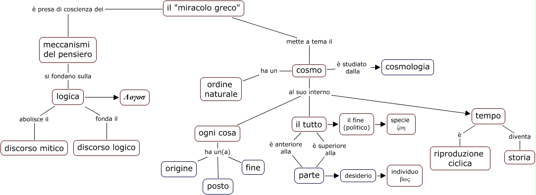 Questa Cmap, creata con IHMC CmapTools, contiene informazioni relative a: 05 Il miracolo greco, il "miracolo greco" è presa di coscienza dei meccanismi del pensiero, il tutto è superiore alla parte, il tutto è anteriore alla parte, logica fonda il discorso logico, tempo è riproduzione ciclica, ogni cosa ha un(a) fine, il tutto il fine (politico), ogni cosa ha un(a) posto, cosmo al suo interno tempo, cosmo è studiato dalla cosmologia, cosmo al suo interno ogni cosa, il fine (politico) specie ζοη, ogni cosa ha un(a) origine, meccanismi del pensiero si fondano sulla logica, parte desiderio, desiderio individuo βιος, cosmo al suo interno il tutto, il "miracolo greco" mette a tema il cosmo, tempo diventa storia, logica Λογοσ
