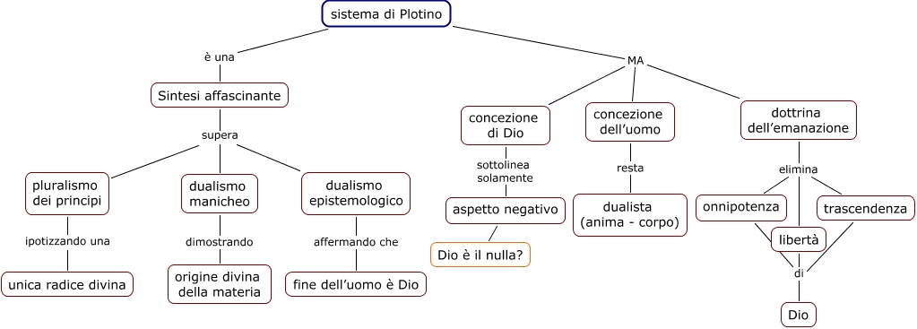 Questa Cmap, creata con IHMC CmapTools, contiene informazioni relative a: 10q Plotino - Conclusioni, dottrina dell’emanazione elimina onnipotenza, dualismo epistemologico affermando che fine dell’uomo è Dio, dottrina dell’emanazione elimina trascendenza, libertà di Dio, sistema di Plotino MA concezione dell’uomo, aspetto negativo Dio è il nulla?, concezione di Dio sottolinea solamente aspetto negativo, dualismo manicheo dimostrando origine divina della materia, sistema di Plotino MA dottrina dell’emanazione, Sintesi affascinante supera dualismo epistemologico, Sintesi affascinante supera pluralismo dei principi, trascendenza di Dio, dottrina dell’emanazione elimina libertà, Sintesi affascinante supera dualismo manicheo, concezione dell’uomo resta dualista (anima - corpo), sistema di Plotino è una Sintesi affascinante, pluralismo dei principi ipotizzando una unica radice divina, onnipotenza di Dio, sistema di Plotino MA concezione di Dio
