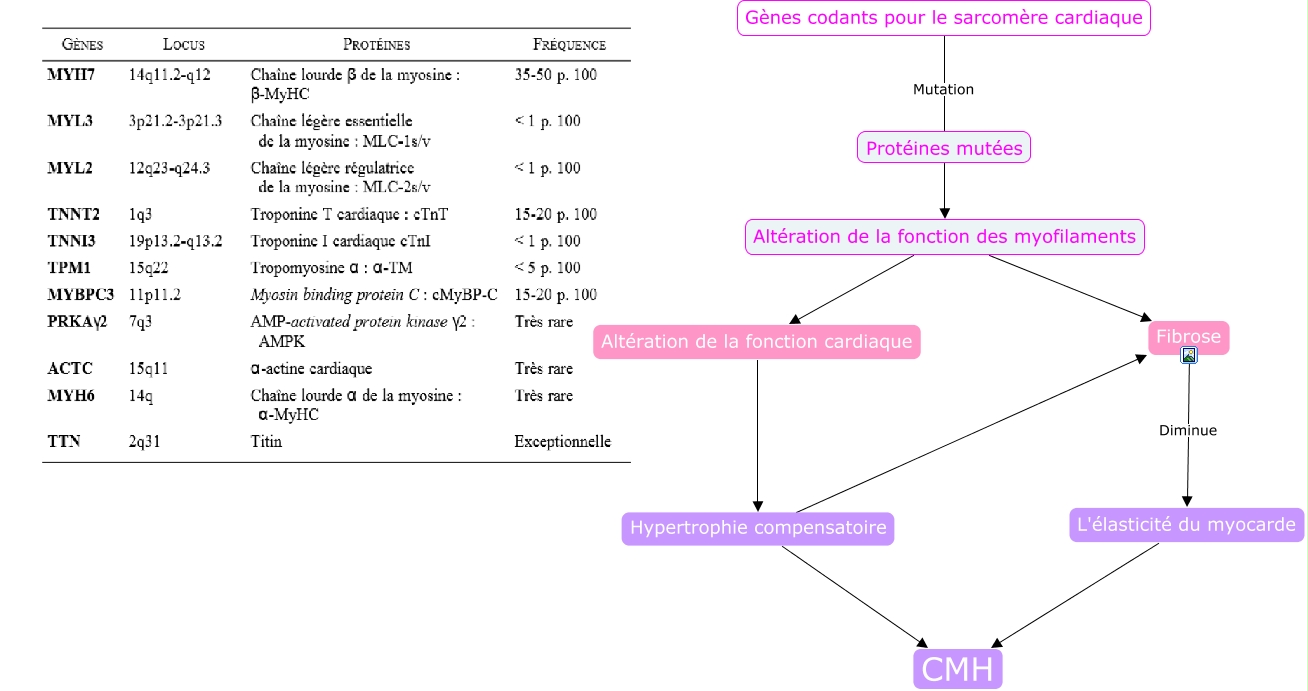 Cette carte de concepts créée avec IHMC CmapTools traite de: CMH, Altération de la fonction des myofilaments Fibrose, Altération de la fonction des myofilaments Altération de la fonction cardiaque, Hypertrophie compensatoire Fibrose, Fibrose Diminue L'élasticité du myocarde, Hypertrophie compensatoire CMH, L'élasticité du myocarde CMH, Gènes codants pour le sarcomère cardiaque Mutation Protéines mutées, Altération de la fonction cardiaque Hypertrophie compensatoire, Protéines mutées Altération de la fonction des myofilaments