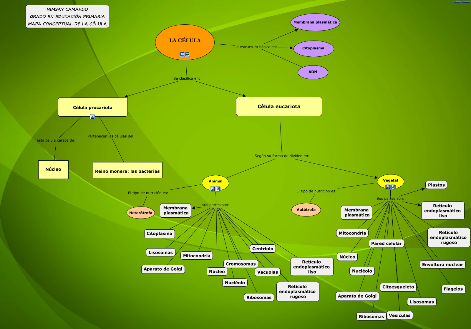 Este Cmap, tiene información relacionada con: LA CÉLULA, Animal El tipo de nutrición es: Heterótrofa, Vegetal Sus partes son: Retículo endoplasmático liso, Vegetal Sus partes son: Citoesqueleto, LA CÉLULA la estructura básica es: Citoplasma, Vegetal Sus partes son: Nucléolo, Vegetal Sus partes son: Pared celular, Vegetal Sus partes son: Lisosomas, Célula eucariota Según su forma de dividen en: Animal, Animal sus partes son: Lisosomas, Animal sus partes son: Retículo endoplasmático rugoso, Célula procariota esta célula carece de: Núcleo, Animal sus partes son: Ribosomas, Animal sus partes son: Retículo endoplasmático liso, Célula procariota Pertenecen las células del: Reino monera: las bacterias, Animal sus partes son: Mitocondria, Vegetal Sus partes son: Membrana plasmática, LA CÉLULA Se clasifica en: Célula eucariota, LA CÉLULA Se clasifica en: Célula procariota, Vegetal El tipo de nutrición es: Autótrofa, Animal sus partes son: Cromosomas