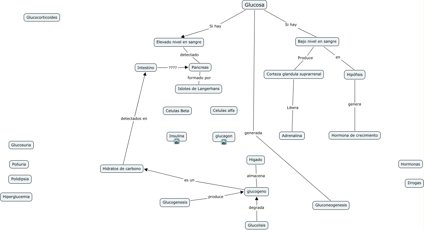 Este Cmap, tiene información relacionada con: TP modulo 4 Regulacion glucemia, Hipófisis genera Hormona de crecimiento, Intestino ???? Pancreas, Glucosa Si hay Bajo nivel en sangre, Bajo nivel en sangre Produce Corteza glandula suprarrenal, glucogeno es un Hidratos de carbono, Bajo nivel en sangre en Hipófisis, Glucosa Si hay Elevado nivel en sangre, Glucolisis degrada glucogeno, Higado almacena glucogeno, Glucogenesis produce glucogeno, Hidratos de carbono detectados en Intestino, Corteza glandula suprarrenal Libera Adrenalina, Glucosa generada Gluconeogenesis, Pancreas formado por Islotes de Langerhans, Elevado nivel en sangre detectado Pancreas