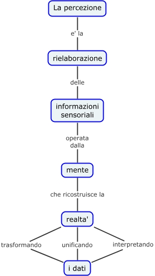 Questa Cmap, creata con IHMC CmapTools, contiene informazioni relative a: La percezione, realta' unificando i dati, informazioni sensoriali operata dalla mente, realta' trasformando i dati, rielaborazione delle informazioni sensoriali, La percezione e' la rielaborazione, realta' interpretando i dati, mente che ricostruisce la realta'
