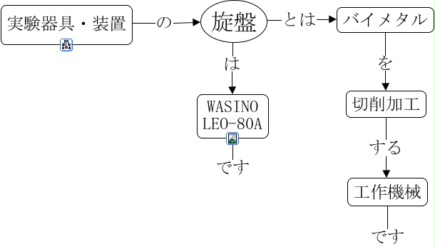このコンセプトマップに関連する情報: 旋盤とは, 切削加工 する 工作機械, バイメタル を 切削加工, 旋盤 とは バイメタル, 実験器具・装置 の 旋盤