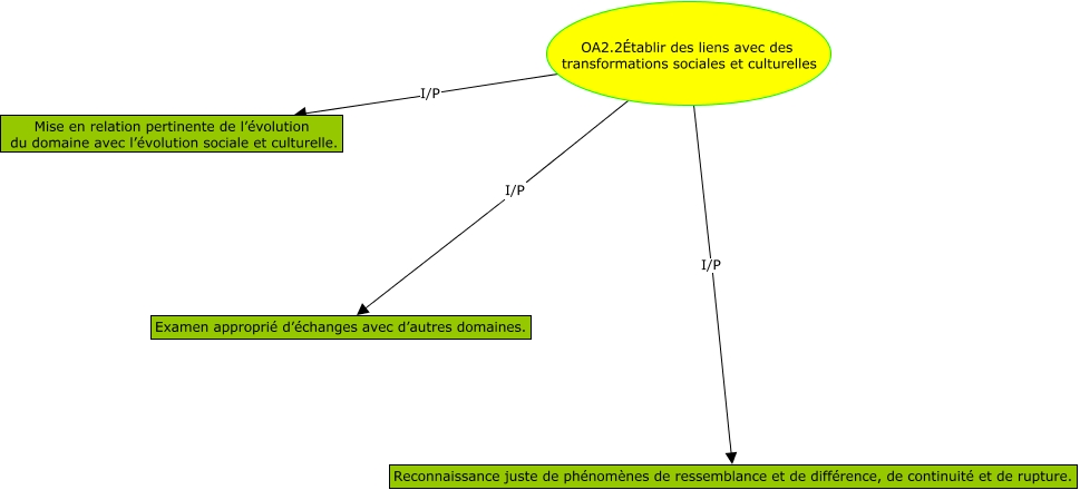 Cette carte de concepts créée avec IHMC CmapTools traite de: UA2.2, OA2.2Établir des liens avec des transformations sociales et culturelles I/P Mise en relation pertinente de l’évolution du domaine avec l’évolution sociale et culturelle., OA2.2Établir des liens avec des transformations sociales et culturelles I/P Examen approprié d’échanges avec d’autres domaines., OA2.2Établir des liens avec des transformations sociales et culturelles I/P Reconnaissance juste de phénomènes de ressemblance et de différence, de continuité et de rupture.