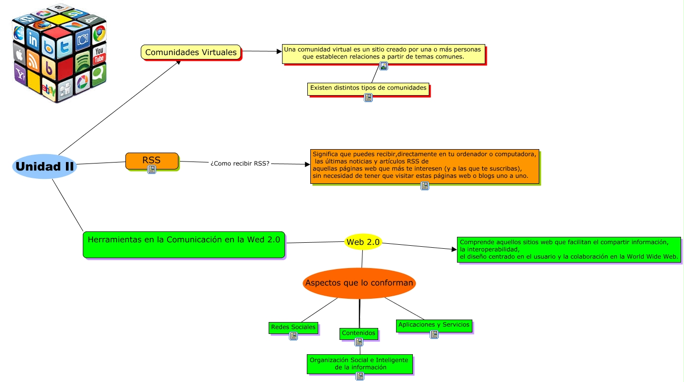 Este Cmap, tiene información relacionada con: Unidad 2, Una comunidad virtual es un sitio creado por una o más personas que establecen relaciones a partir de temas comunes. ???? Existen distintos tipos de comunidades, RSS ¿Como recibir RSS? Significa que puedes recibir,directamente en tu ordenador o computadora, las últimas noticias y artículos RSS de aquellas páginas web que más te interesen (y a las que te suscribas), sin necesidad de tener que visitar estas páginas web o blogs uno a uno., RSS Unidad II Comunidades Virtuales, Herramientas en la Comunicación en la Wed 2.0 Web 2.0 Comprende aquellos sitios web que facilitan el compartir información, la interoperabilidad, el diseño centrado en el usuario y la colaboración en la World Wide Web., RSS Unidad II Herramientas en la Comunicación en la Wed 2.0, Contenidos Aspectos que lo conforman Aplicaciones y Servicios, Herramientas en la Comunicación en la Wed 2.0 Web 2.0 Contenidos, Contenidos Aspectos que lo conforman Organización Social e Inteligente de la información, Contenidos Aspectos que lo conforman Redes Sociales, Comunidades Virtuales ???? Una comunidad virtual es un sitio creado por una o más personas que establecen relaciones a partir de temas comunes.