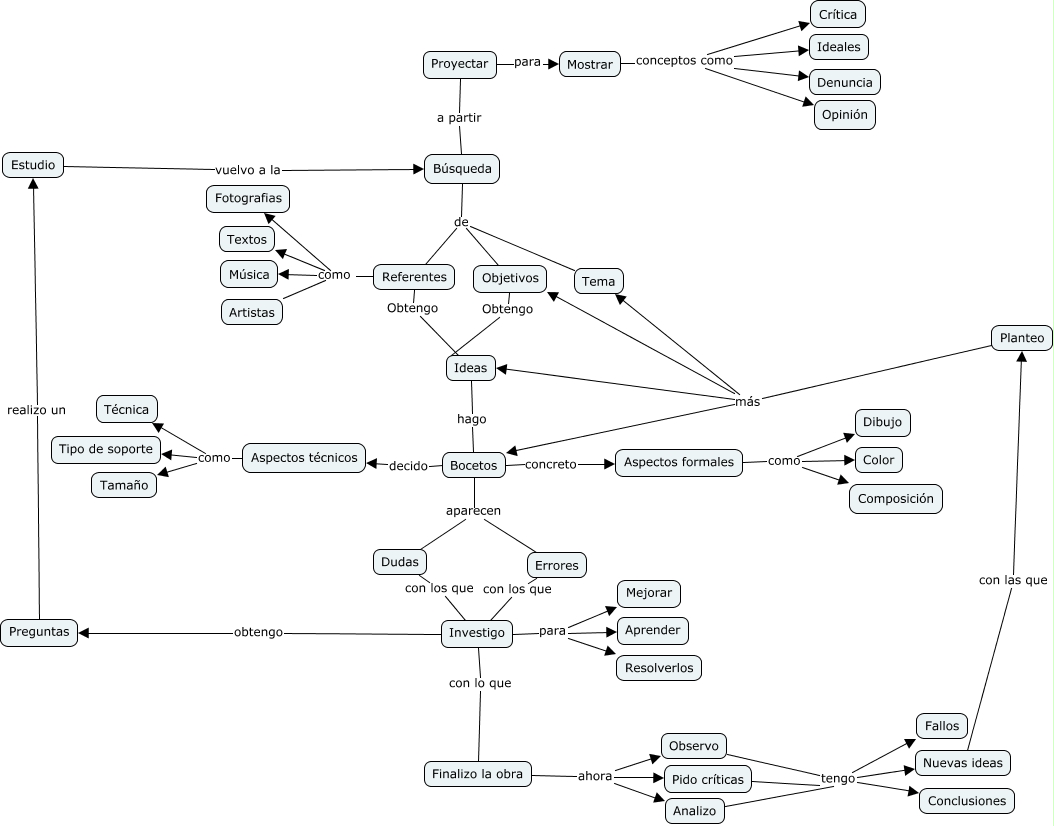 Este Cmap, tiene información relacionada con: Naomy Pastor Lahoz proyectar, Analizo tengo Nuevas ideas, Planteo más Ideas, Referentes como Textos, Aspectos técnicos como Tipo de soporte, Referentes como Música, Nuevas ideas con las que Planteo, Observo tengo Fallos, Pido críticas tengo Nuevas ideas, Bocetos decido Aspectos técnicos, Investigo para Mejorar, Ideas hago Bocetos, Pido críticas tengo Fallos, Analizo tengo Conclusiones, Aspectos técnicos como Técnica, Búsqueda de Referentes, Búsqueda de Objetivos, Mostrar conceptos como Crítica, Planteo más Bocetos, Mostrar conceptos como Denuncia, Investigo con lo que Finalizo la obra