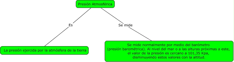 Este Cmap, tiene información relacionada con: Presion atmosferica, Presión Atmosférica Se mide Se mide normalmente por medio del barómetro (presión barométrica). Al nivel del mar o a las alturas próximas a este, el valor de la presión es cercano a 101,35 Kpa, disminuyendo estos valores con la altitud., Presión Atmosférica Es La presión ejercida por la atmósfera de la tierra