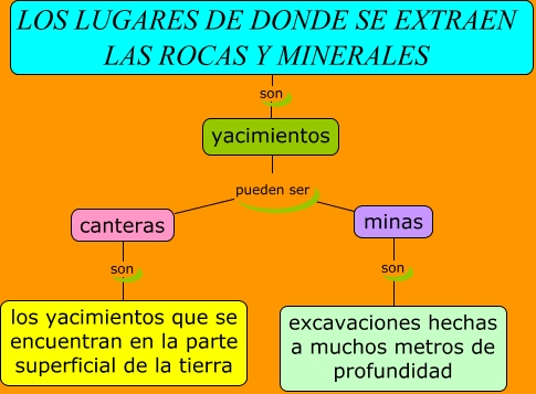 Este Cmap, tiene información relacionada con: Los lugares de donde se extraen las rocas y minerales, yacimientos pueden ser minas, canteras son los yacimientos que se encuentran en la parte superficial de la tierra, LOS LUGARES DE DONDE SE EXTRAEN LAS ROCAS Y MINERALES son yacimientos, minas son excavaciones hechas a muchos metros de profundidad, yacimientos pueden ser canteras