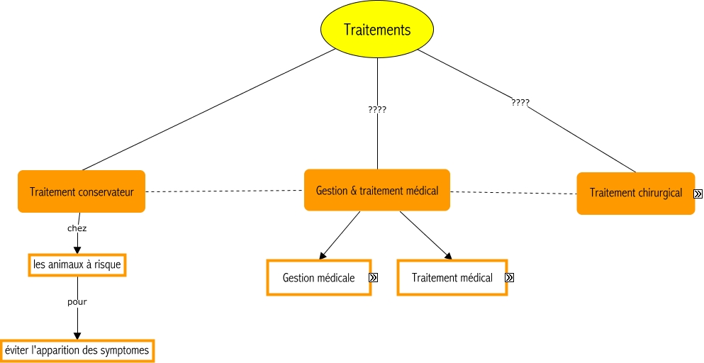 Cette carte de concepts créée avec IHMC CmapTools traite de: Alex - traitements, l'administration de médicaments comme des anti-inflammatoires, Gestion & traitement médical Traitement médical, la modification de la forme d'un os comme l'ostéotomie, la corpectomie & la laminectomie, comme outils l'arthrotomie & l'arthroscopie, Traitements ???? Traitement chirurgical, Gestion & traitement médical Traitement chirurgical, le traitement chirurgical avec comme outils, le rééquilibrage de la ration alimentaire ou en en surveillant le poids, Le traitement médical consiste en l'administration de médicaments, le traitement chirurgical consiste en l'immobilisation d'une articulation, l'arthrodèse, La gestion médicale se fait par La réduction de l'activité physique, Traitements ???? Gestion & traitement médical, Gestion & traitement médical Gestion médicale, Traitement conservateur chez les animaux à risque, Traitements Traitement conservateur, Traitement conservateur Gestion & traitement médical, Le traitement médical dans le but de soulager, le traitement chirurgical consiste en la modification de la forme d'un os, soulager ou rééquilibrer un déséquilibre hormonal, La réduction de l'activité physique ainsi que par le rééquilibrage de la ration alimentaire