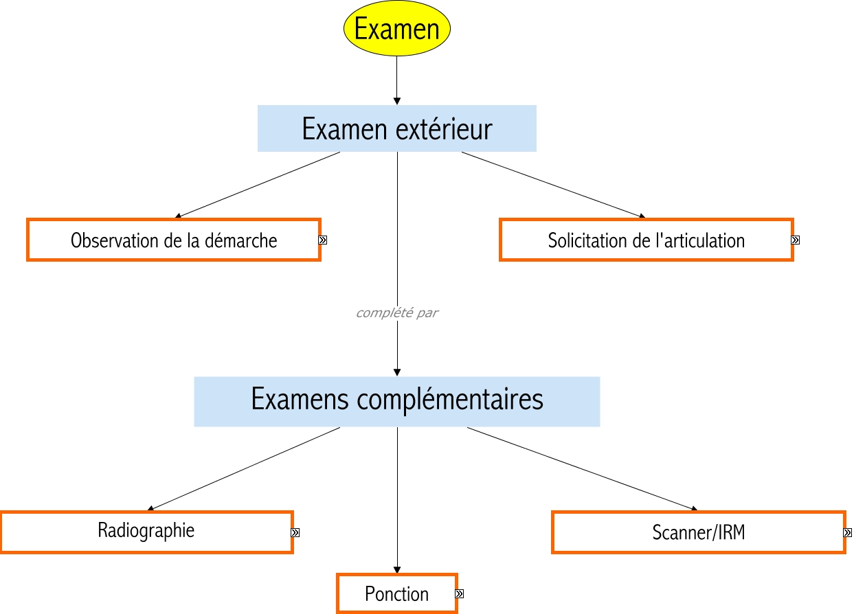 Cette carte de concepts créée avec IHMC CmapTools traite de: Brouillon Examen Roxane, Masses où on recherche Cellules annormale, Observation de la démarche où l'on recherche Bruits anormaux (crépitements, craquements, ...), Examen extérieur complété par Examens complémentaires, Scanner/IRM permet de voir Lésions ligamentaires, Radiographie où l'on recherche Annomalies de forme, Solicitation de l'articulation où l'on recherche Douleur, Observation de la démarche où l'on recherche Boiteries, Solicitation de l'articulation où l'on recherche Diminution ou augmentation de l'amplitude articulaire, Scanner/IRM permet de voir Lesions musculaires, Examen extérieur Observation de la démarche, Articulaire où on recherche Liquide inflammatoire, Radiographie où l'on recherche Masses, Masses où on recherche Pus, Masses Ponction, Observation de la démarche se pratique Au pas, à la course et suffisament longtemps pour détecter des variations, Articulaire où on recherche Pus ???, Examens complémentaires Scanner/IRM, Observation de la démarche où l'on recherche Anomalies de démarche, Examens complémentaires Ponction, Examen Examen extérieur