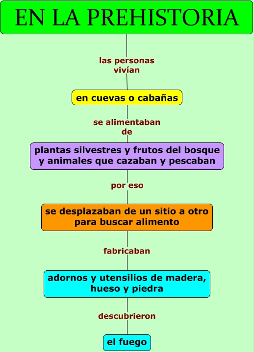 Este Cmap, tiene información relacionada con: En la prehistoria, en cuevas o cabañas se alimentaban de plantas silvestres y frutos del bosque y animales que cazaban y pescaban, EN LA PREHISTORIA las personas vivían en cuevas o cabañas, plantas silvestres y frutos del bosque y animales que cazaban y pescaban por eso se desplazaban de un sitio a otro para buscar alimento, adornos y utensilios de madera, hueso y piedra descubrieron el fuego, se desplazaban de un sitio a otro para buscar alimento fabricaban adornos y utensilios de madera, hueso y piedra