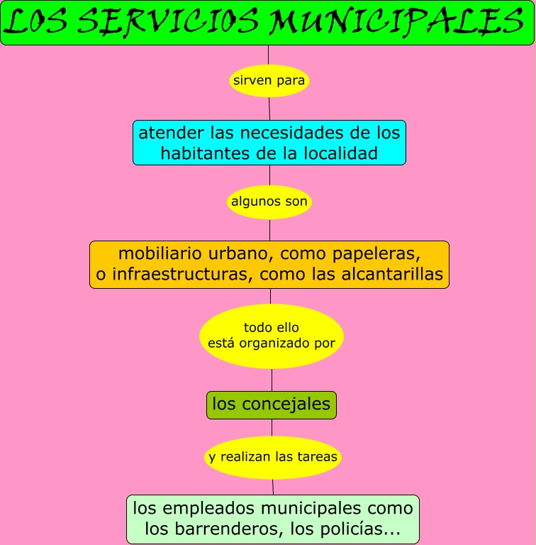 Este Cmap, tiene información relacionada con: Los servicios municipales, mobiliario urbano, como papeleras, o infraestructuras, como las alcantarillas todo ello está organizado por los concejales, los concejales y realizan las tareas los empleados municipales como los barrenderos, los policías..., LOS SERVICIOS MUNICIPALES sirven para atender las necesidades de los habitantes de la localidad, atender las necesidades de los habitantes de la localidad algunos son mobiliario urbano, como papeleras, o infraestructuras, como las alcantarillas