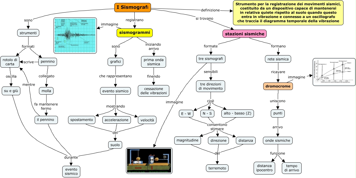 Questa Cmap, creata con IHMC CmapTools, contiene informazioni relative a: 4.5 Sismografi, il pennino durante evento sismico, tre direzioni di movimento cioè alto - basso (Z), rete sismica ricavare dromocrome, strumenti formati rotolo di carta, onde sismiche funzione tempo di arrivo, dromocrome uniscono punti, alto - basso (Z) consentono stimare distanza, evento sismico mostrando spostamento, direzione del terremoto, tre sismografi sensibili tre direzioni di movimento, I Sismografi registrano sismogrammi, rotolo di carta oscilla su e giù, evento sismico mostrando accelerazione, prima onda sismica finendo cessazione delle vibrazioni, stazioni sismiche formate tre sismografi, sismogrammi iniziando arrivo prima onda sismica, N - S consentono stimare direzione, stazioni sismiche formano rete sismica, grafici che rappresentano evento sismico, molla fa mantenere fermo il pennino