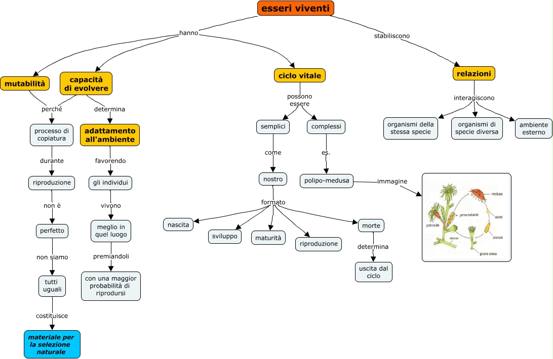 Questa Cmap, creata con IHMC CmapTools, contiene informazioni relative a: 11.5 Mutabilità ciclo vitale relazioni, meglio in quel luogo premiandoli con una maggior probabilità di riprodursi, perfetto non siamo tutti uguali, polipo-medusa immagine, esseri viventi hanno capacità di evolvere, relazioni interagiscono organismi di specie diversa, nostro formato maturità, nostro formato sviluppo, riproduzione non è perfetto, nostro formato riproduzione, nostro formato morte, relazioni interagiscono organismi della stessa specie, capacità di evolvere determina adattamento all'ambiente, esseri viventi stabiliscono relazioni, mutabilità perché processo di copiatura, esseri viventi hanno ciclo vitale, semplici come nostro, tutti uguali costituisce materiale per la selezione naturale, complessi es. polipo-medusa, nostro formato nascita, morte determina uscita dal ciclo