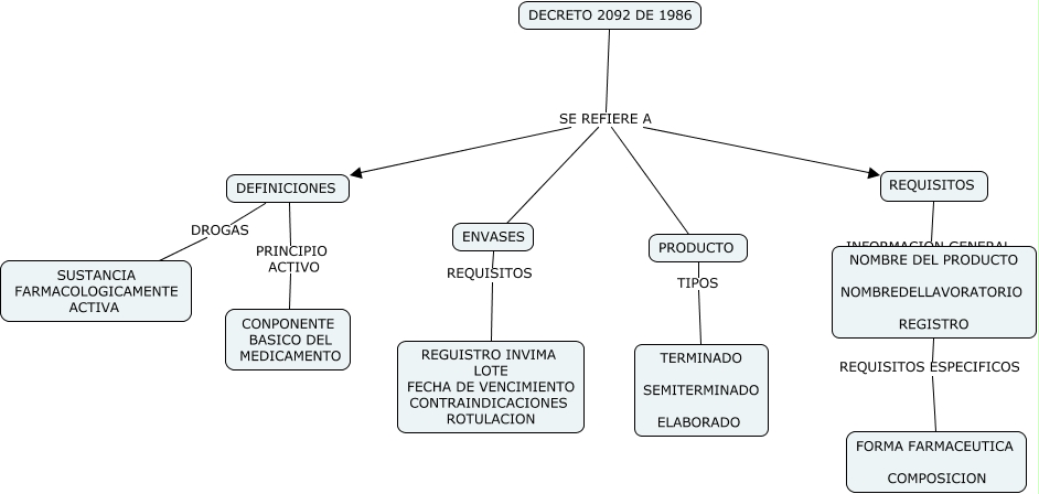 Este Cmap, tiene información relacionada con: DECRETO 2092, DECRETO 2092 DE 1986 SE REFIERE A DEFINICIONES, DECRETO 2092 DE 1986 SE REFIERE A REQUISITOS, DECRETO 2092 DE 1986 SE REFIERE A ENVASES, REQUISITOS INFORMACION GENERAL NOMBRE DEL PRODUCTO NOMBREDELLAVORATORIO REGISTRO, DEFINICIONES PRINCIPIO ACTIVO CONPONENTE BASICO DEL MEDICAMENTO, PRODUCTO TIPOS TERMINADO SEMITERMINADO ELABORADO, NOMBRE DEL PRODUCTO NOMBREDELLAVORATORIO REGISTRO REQUISITOS ESPECIFICOS FORMA FARMACEUTICA COMPOSICION, DECRETO 2092 DE 1986 SE REFIERE A PRODUCTO, DEFINICIONES DROGAS SUSTANCIA FARMACOLOGICAMENTE ACTIVA, ENVASES REQUISITOS REGUISTRO INVIMA LOTE FECHA DE VENCIMIENTO CONTRAINDICACIONES ROTULACION