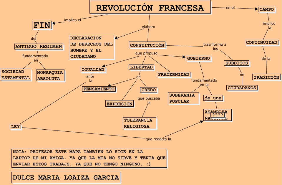 Este Cmap, tiene información relacionada con: DULCE MARIA LOAIZA GARCIA, MAPA CONCEPTUAL, REVOLUCION FRANCESA. 2-9, CAMPO implicò la CONTINUIDAD, LIBERTAD de EXPRESIÒN, CONSTITUCIÒN que propuso IGUALDAD, FIN del ANTIGUO REGIMEN, CONSTITUCIÒN que propuso FRATERNIDAD, CREDO que buscaba la TOLERANCIA RELIGIOSA, CONTINUIDAD de la TRADICIÒN, LEY que redacta la ASAMBLEA NACIONAL, REVOLUCIÒN FRANCESA elaboro DECLARACION DE DERECHOS DEL HOMBRE Y EL CIUDADANO, CONSTITUCIÒN que propuso LIBERTAD, ANTIGUO REGIMEN fundamentado en SOCIEDAD ESTAMENTAL, GOBIERNO fundamentado en la de una, LIBERTAD de CREDO, ANTIGUO REGIMEN fundamentado en MONARQUIA ABSOLUTA, GOBIERNO fundamentado en la SOBERANIA POPULAR, de una ???? ????, LIBERTAD de PENSAMIENTO, REVOLUCIÒN FRANCESA en el CAMPO, CONSTITUCIÒN trasnformo a los SUBDITOS, IGUALDAD ante la LEY