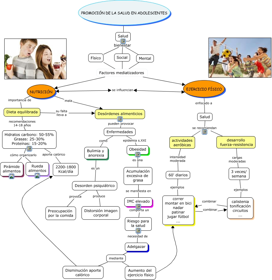 Este Cmap, tiene información relacionada con: Dafra_mapa, mediante Aumento del ejercicio físico, Hidratos carbono: 50-55% Grasas: 25-30% Proteínas: 15-20% cómo organizarlo Pirámide alimentos, Salud bienestar Físico, Salud se recomiendan actividades aeróbicas, Físico Factores mediatizadores, EJERCICIO FÍSICO enfocado a Salud, Factores mediatizadores EJERCICIO FÍSICO, Riesgo para la salud necesidad de Adelgazar, Acumulación excesiva de grasa se manifiesta en IMC elevado, Hidratos carbono: 50-55% Grasas: 25-30% Proteínas: 15-20% cómo organizarlo Rueda alimentos, actividades aeróbicas intensidad moderada 60' diarios, desarrollo fuerza-resistencia cargas moderadas 3 veces/ semana, Hidratos carbono: 50-55% Grasas: 25-30% Proteínas: 15-20% aporte calórico 2200-1800 Kcal/día, PROMOCIÓN DE LA SALUD EN ADOLESCENTES Salud, calistenia tonificación circuitos ... combinar correr montar en bici nadar patinar jugar fútbol ..., Mental Factores mediatizadores, mediante Disminución aporte calórico, 3 veces/ semana ejemplos calistenia tonificación circuitos ..., Salud bienestar Social, Desorden psiquiátrico provoca Preocupación por la comida
