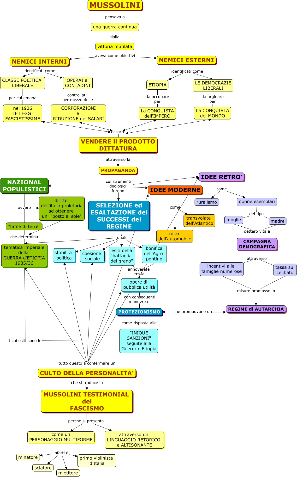 Questa Cmap, creata con IHMC CmapTools, contiene informazioni relative a: mappa Mussolini e propaganda 2, PROPAGANDA i cui strumenti ideologici furono NAZIONAL POPULISTICI, esiti della "battaglia del grano" annoverate tra le bonifica dell'Agro pontino, come un PERSONAGGIO MULTIFORME infatti è primo violinista d'Italia, come un PERSONAGGIO MULTIFORME infatti è sciatore, tematica imperiale della GUERRA d'ETIOPIA 1935/36 i cui esiti sono le "INIQUE SANZIONI" seguite alla Guerra d'Etiopia, tematica imperiale della GUERRA d'ETIOPIA 1935/36 che determina "fame di terre", NAZIONAL POPULISTICI ovvero "fame di terre", CULTO DELLA PERSONALITA' che si traduce in MUSSOLINI TESTIMONIAL del FASCISMO, CAMPAGNA DEMOGRAFICA dettero vita a madre, CULTO DELLA PERSONALITA' tutto questo a confermare un IDEE MODERNE, IDEE MODERNE come transvolate dell'Atlantico, ETIOPIA da occupare per La CONQUISTA dell'IMPERO, NEMICI ESTERNI identificati come LE DEMOCRAZIE LIBERALI, VENDERE il PRODOTTO DITTATURA occorre La CONQUISTA dell'IMPERO, NAZIONAL POPULISTICI ovvero diritto dell'italia proletaria ad ottenere un "posto al sole", NEMICI ESTERNI identificati come ETIOPIA, IDEE MODERNE come mito dell'automobile, donne esemplari del tipo madre, CAMPAGNA DEMOGRAFICA attraverso incentivi alle famiglie numerose, MUSSOLINI TESTIMONIAL del FASCISMO perchè si presenta attraverso un LINGUAGGIO RETORICO e ALTISONANTE