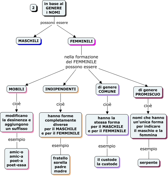 Questa Cmap, creata con IHMC CmapTools, contiene informazioni relative a: NOME 2 GENERE, FEMMINILI nella formazione del FEMMINILE possono essere MOBILI, nomi che hanno un'unica forma per indicare il maschio e la femmina esempio serpente, FEMMINILI nella formazione del FEMMINILE possono essere di genere COMUNE, INDIPENDENTI cioè hanno forme completamente diverse per il MASCHILE e per il FEMMINILE, di genere COMUNE cioè hanno la stessa forma per il MASCHILE e per il FEMMINILE, FEMMINILI nella formazione del FEMMINILE possono essere di genere PROMISCUO, hanno forme completamente diverse per il MASCHILE e per il FEMMINILE esempio fratello sorella padre madre, in base al GENERE i NOMI possono essere MASCHILI, hanno la stessa forma per il MASCHILE e per il FEMMINILE esempio il custode la custode, FEMMINILI nella formazione del FEMMINILE possono essere INDIPENDENTI, modificano la desinenza e aggiungono un suffisso esempio amic-o amic-a poet-a poet-essa, di genere PROMISCUO cioè nomi che hanno un'unica forma per indicare il maschio e la femmina, in base al GENERE i NOMI possono essere FEMMINILI, MOBILI cioè modificano la desinenza e aggiungono un suffisso