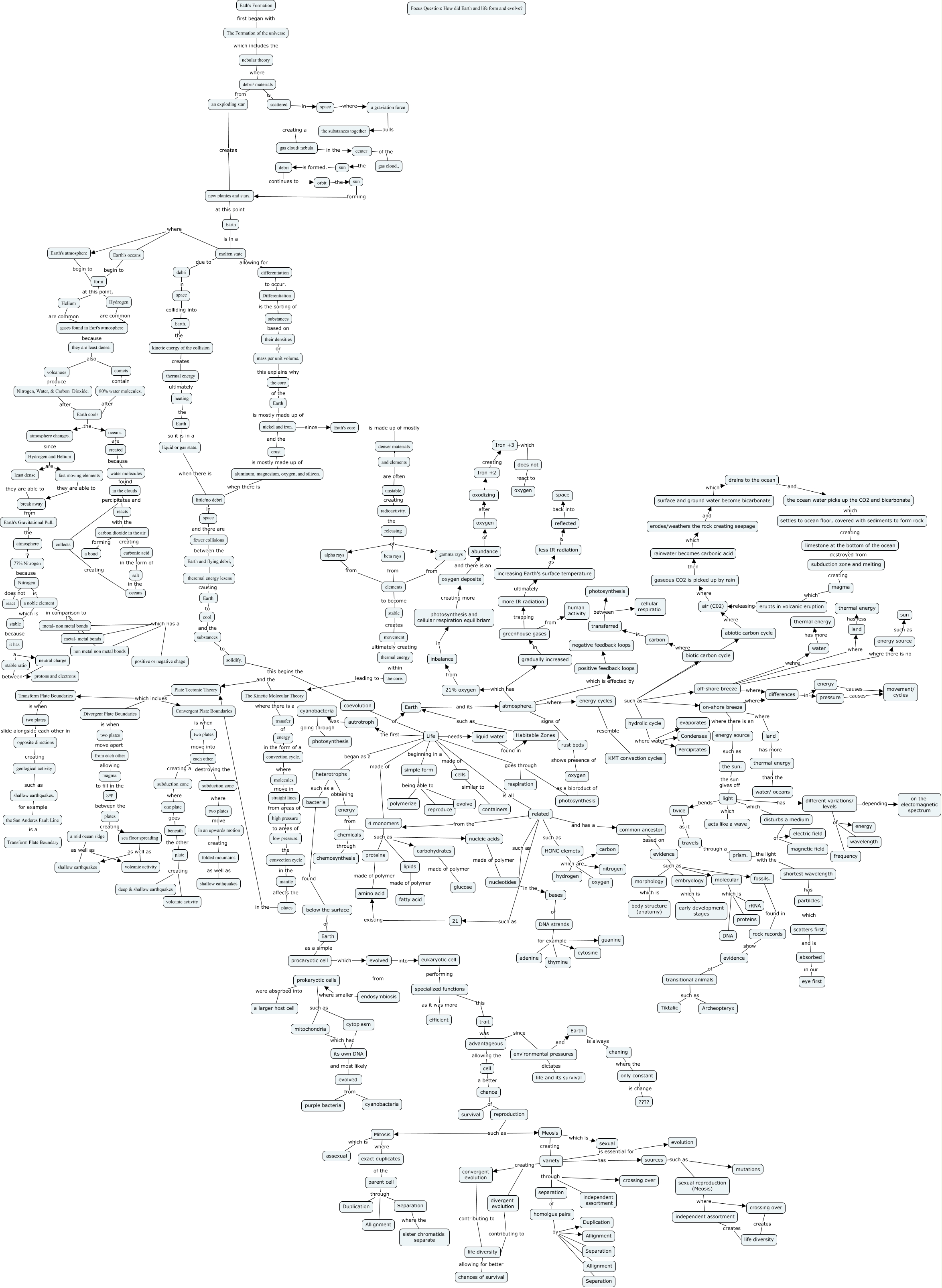 This Concept Map, created with IHMC CmapTools, has information related to: Extra Credit- Formation & Coevolution of Life and Earth, lipids made of polymer fatty acid, they are least dense. also comets, atmosphere. which is effected by negative feedback loops, Life made of cells, Plate Tectonic Theory which inclues Convergent Plate Boundaries, cell a better chance, Earth and its atmosphere., different variations/ levels of wavelength, Meosis creating variety, related from the 4 monomers, light which disturbs a medium, plate creating deep & shallow earthquakes, Eath's Formation first began with The Formation of the universe, Hydrogen and Helium are least dense, it has a stable ratio, light which acts like a wave, DNA strands for example cytosine, little/no debri in space, debri/ materials is scattered, reflected back into space