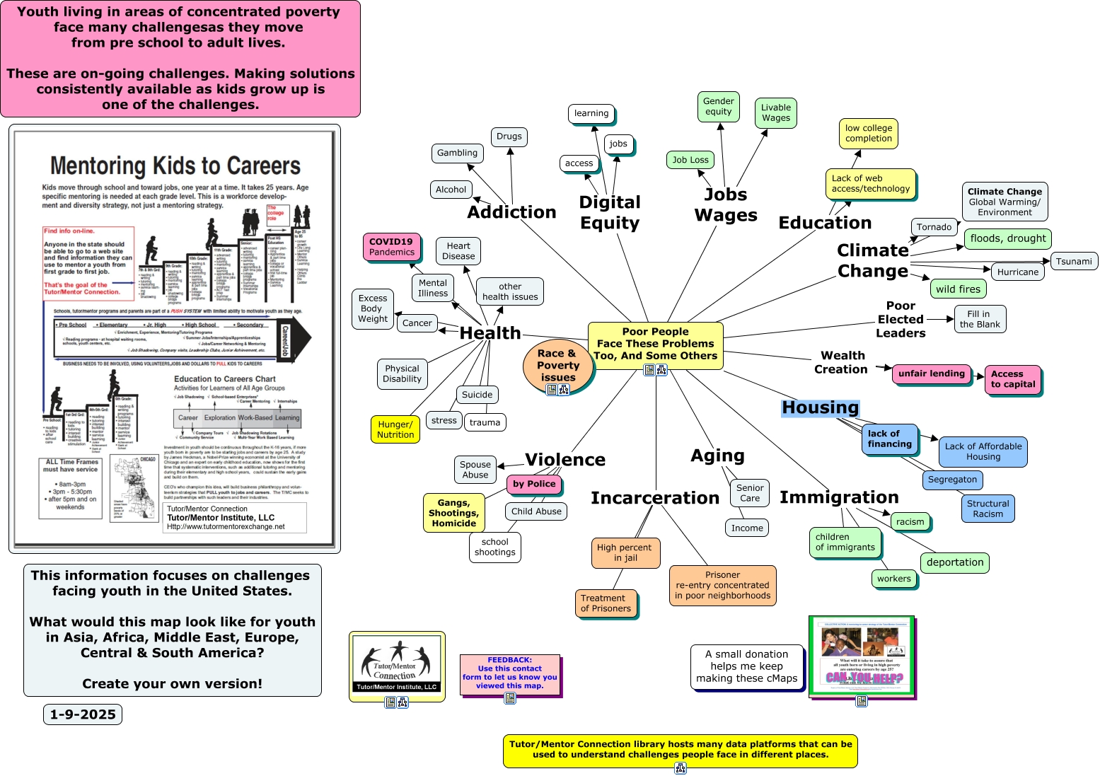 This Concept Map, created with IHMC CmapTools, has information related to: BirthToWork-Challenges-USA, Poor People Face These Problems Too, And Some Others Climate Change Climate Change Global Warming/ Environment, Poor People Face These Problems Too, And Some Others Immigration deportation, Poor People Face These Problems Too, And Some Others Climate Change Tsunami, Poor People Face These Problems Too, And Some Others Violence by Police, Poor People Face These Problems Too, And Some Others Jobs Wages Gender equity, Poor People Face These Problems Too, And Some Others Immigration workers, Poor People Face These Problems Too, And Some Others Health Physical Disability, Poor People Face These Problems Too, And Some Others Education Lack of web access/technology, Poor People Face These Problems Too, And Some Others Addiction Alcohol, Poor People Face These Problems Too, And Some Others Violence school shootings, Poor People Face These Problems Too, And Some Others Jobs Wages Job Loss, Poor People Face These Problems Too, And Some Others Health Mental Illiness, Poor People Face These Problems Too, And Some Others Digital Equity jobs, Poor People Face These Problems Too, And Some Others Climate Change Hurricane, Poor People Face These Problems Too, And Some Others Health Heart Disease, Poor People Face These Problems Too, And Some Others Climate Change Tornado, Poor People Face These Problems Too, And Some Others Education low college completion, Poor People Face These Problems Too, And Some Others Health Suicide, Poor People Face These Problems Too, And Some Others Health other health issues, Poor People Face These Problems Too, And Some Others Aging Senior Care