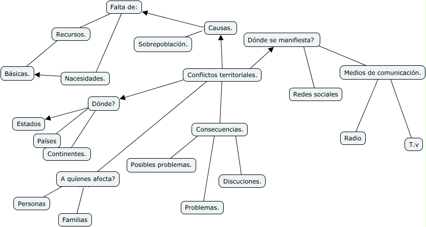 Este Cmap, tiene información relacionada con: Sin Título 1, A quíenes afecta? ???? Personas, Dónde se manifiesta? ???? Medios de comunicación., Falta de: ???? Nacesidades., Medios de comunicación. ???? Radio, Dónde? ???? Continentes., Dónde? ???? Estados, Falta de: ???? Recursos., Causas. ???? Sobrepoblación., Conflictos territoriales. ???? Consecuencias., Consecuencias. ???? Problemas., Consecuencias. ???? Discuciones., Nacesidades. ???? Básicas., Conflictos territoriales. ???? Dónde se manifiesta?, Conflictos territoriales. ???? Dónde?, Dónde? ???? Países, Conflictos territoriales. ???? A quíenes afecta?, A quíenes afecta? ???? Familias, Causas. ???? Falta de:, Dónde se manifiesta? ???? Redes sociales, Consecuencias. ???? Posibles problemas.