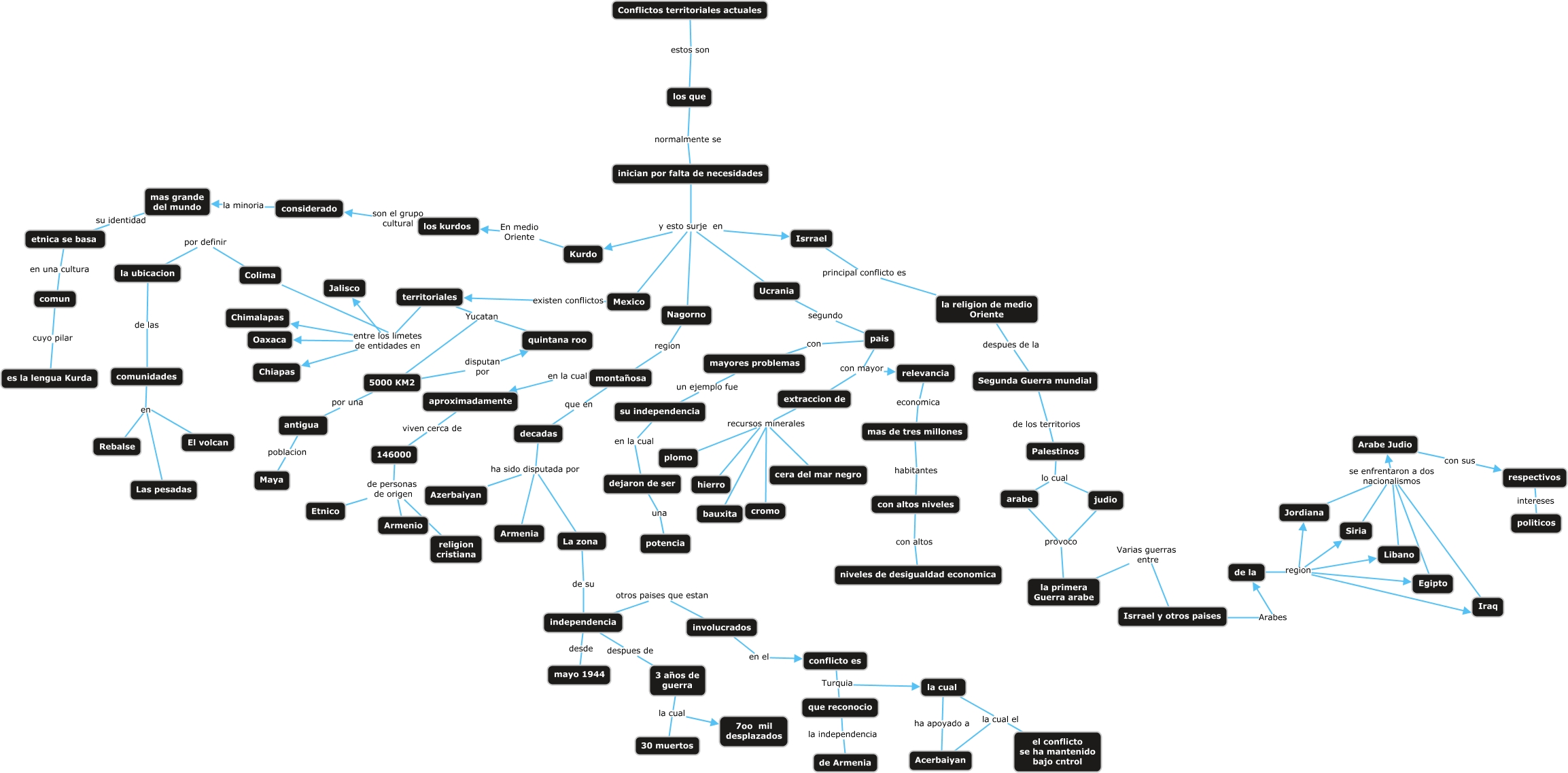 Este Cmap, tiene información relacionada con: Conflictos territoriales actuales, conflicto es Turquia que reconocio, Kurdo En medio Oriente los kurdos, pais con mayor relevancia, decadas ha sido disputada por Azerbaiyan, Egipto se enfrentaron a dos nacionalismos Arabe Judio, Isrrael principal conflicto es la religion de medio Oriente, extraccion de recursos minerales plomo, aproximadamente viven cerca de 146000, Colima entre los limetes de entidades en Chiapas, Ucrania segundo pais, de la region Jordiana, inician por falta de necesidades y esto surje en Kurdo, La zona de su independencia, territoriales entre los limetes de entidades en Oaxaca, Siria se enfrentaron a dos nacionalismos Arabe Judio, Mexico existen conflictos territoriales, judio provoco la primera Guerra arabe, territoriales entre los limetes de entidades en Chiapas, inician por falta de necesidades y esto surje en Ucrania, pais con mayor extraccion de
