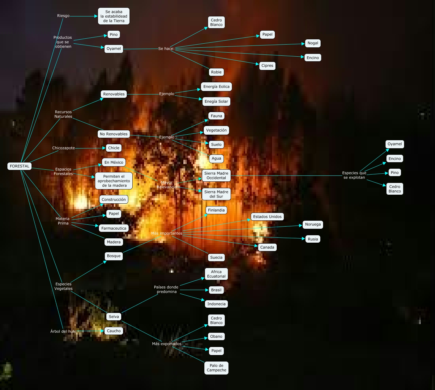 Este Cmap, tiene información relacionada con: FORESTAL, En México Mayor Relevancia Sierra Madre Occidental, Selva Países donde predomina Indonecia, Bosque Más importantes Noruega, No Renovables Ejemplo Vegetación, En México Mayor Relevancia Sierra Madre del Sur, FORESTAL Recursos Naturales Renovables, FORESTAL Especies Vegetales Bosque, Sierra Madre Occidental Especies que se explotan Pino, Selva Más exportados Cedro Blanco, FORESTAL Materia Prima Farmaceutica, Bosque Más importantes Canada, FORESTAL Recursos Naturales No Renovables, Oyamel Se hace: Nogal, FORESTAL Productos que se obtienen Pino, No Renovables Ejemplo Agua, Selva Más exportados Obano, No Renovables Ejemplo Suelo, FORESTAL Riesgo Se acaba la estabilidead de la Tierra, FORESTAL Materia Prima Papel, FORESTAL Chicozapote Chicle