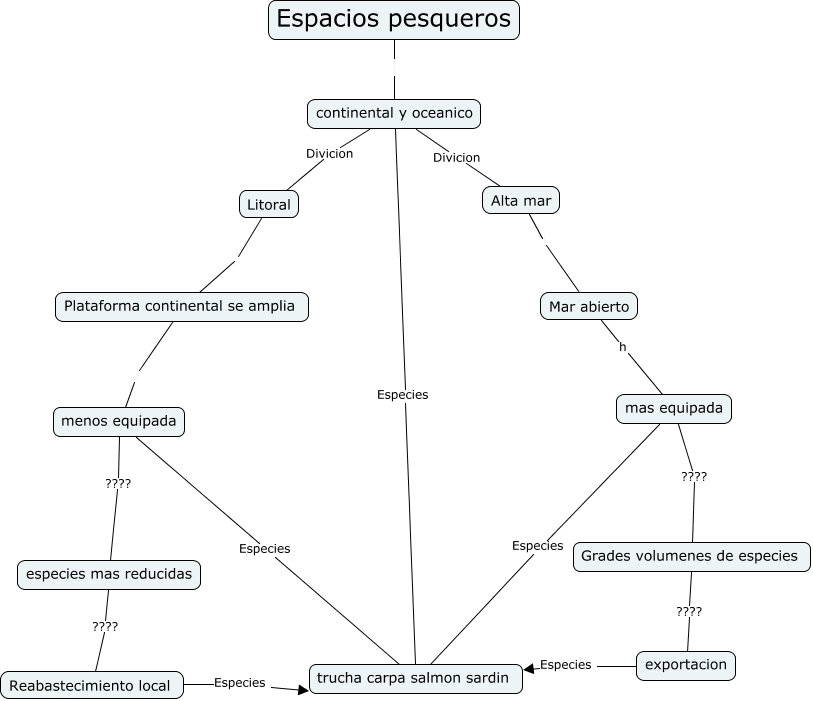 Este Cmap, tiene información relacionada con: peces, Litoral Plataforma continental se amplia, continental y oceanico Divicion Litoral, Plataforma continental se amplia menos equipada, exportacion Especies trucha carpa salmon sardin, menos equipada Especies trucha carpa salmon sardin, continental y oceanico Especies trucha carpa salmon sardin, Mar abierto h mas equipada, Grades volumenes de especies ???? exportacion, menos equipada ???? especies mas reducidas, Espacios pesqueros continental y oceanico, continental y oceanico Divicion Alta mar, Alta mar Mar abierto, mas equipada ???? Grades volumenes de especies, Reabastecimiento local Especies trucha carpa salmon sardin, especies mas reducidas ???? Reabastecimiento local, mas equipada Especies trucha carpa salmon sardin