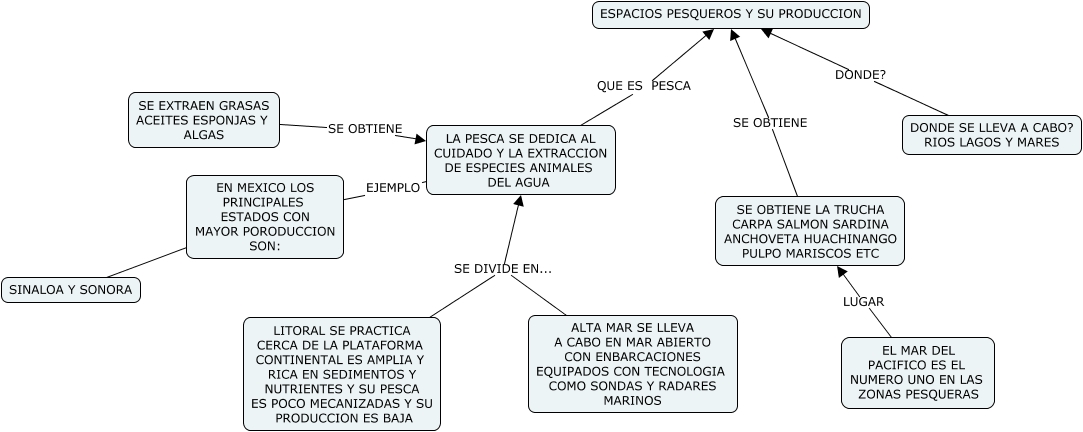 Este Cmap, tiene información relacionada con: PESCA, EN MEXICO LOS PRINCIPALES ESTADOS CON MAYOR PORODUCCION SON: EJEMPLO LA PESCA SE DEDICA AL CUIDADO Y LA EXTRACCION DE ESPECIES ANIMALES DEL AGUA, LITORAL SE PRACTICA CERCA DE LA PLATAFORMA CONTINENTAL ES AMPLIA Y RICA EN SEDIMENTOS Y NUTRIENTES Y SU PESCA ES POCO MECANIZADAS Y SU PRODUCCION ES BAJA SE DIVIDE EN... LA PESCA SE DEDICA AL CUIDADO Y LA EXTRACCION DE ESPECIES ANIMALES DEL AGUA, SINALOA Y SONORA ???? EN MEXICO LOS PRINCIPALES ESTADOS CON MAYOR PORODUCCION SON:, LA PESCA SE DEDICA AL CUIDADO Y LA EXTRACCION DE ESPECIES ANIMALES DEL AGUA QUE ES PESCA ESPACIOS PESQUEROS Y SU PRODUCCION, ALTA MAR SE LLEVA A CABO EN MAR ABIERTO CON ENBARCACIONES EQUIPADOS CON TECNOLOGIA COMO SONDAS Y RADARES MARINOS SE DIVIDE EN... LA PESCA SE DEDICA AL CUIDADO Y LA EXTRACCION DE ESPECIES ANIMALES DEL AGUA, SE OBTIENE LA TRUCHA CARPA SALMON SARDINA ANCHOVETA HUACHINANGO PULPO MARISCOS ETC SE OBTIENE ESPACIOS PESQUEROS Y SU PRODUCCION, SE EXTRAEN GRASAS ACEITES ESPONJAS Y ALGAS SE OBTIENE LA PESCA SE DEDICA AL CUIDADO Y LA EXTRACCION DE ESPECIES ANIMALES DEL AGUA, EL MAR DEL PACIFICO ES EL NUMERO UNO EN LAS ZONAS PESQUERAS LUGAR SE OBTIENE LA TRUCHA CARPA SALMON SARDINA ANCHOVETA HUACHINANGO PULPO MARISCOS ETC, DONDE SE LLEVA A CABO? RIOS LAGOS Y MARES DONDE? ESPACIOS PESQUEROS Y SU PRODUCCION