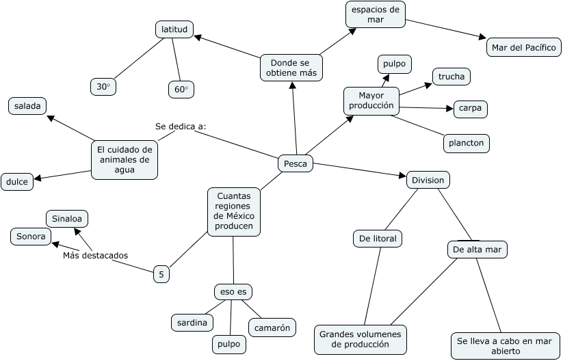 Este Cmap, tiene información relacionada con: Pesca, Pesca ???? Division, Cuantas regiones de México producen ???? eso es, eso es ???? camarón, Mayor producción ???? pulpo, Division ???? De litoral, Mayor producción ???? carpa, Pesca ???? Mayor producción, eso es ???? sardina, eso es ???? pulpo, El cuidado de animales de agua ???? dulce, Pesca ???? Cuantas regiones de México producen, Pesca Se dedica a: El cuidado de animales de agua, De alta mar ???? Se lleva a cabo en mar abierto, 5 Más destacados Sinaloa, espacios de mar ???? Mar del Pacífico, 5 Más destacados Sonora, Mayor producción ???? trucha, Donde se obtiene más ???? espacios de mar, Mayor producción ???? plancton, De litoral ???? Grandes volumenes de producción