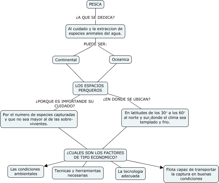 Este Cmap, tiene información relacionada con: PESCA, Por el numero de especies capturadas y que no sea mayor al de las sobre- vivientes. ???? ¿CUALES SON LOS FACTORES DE TIPO ECONOMICO?, ¿CUALES SON LOS FACTORES DE TIPO ECONOMICO? ???? Las condiciones ambientales, LOS ESPACIOS PERQUEROS ¿PORQUE ES IMPORTANDE SU CUIDADO? Por el numero de especies capturadas y que no sea mayor al de las sobre- vivientes., ¿CUALES SON LOS FACTORES DE TIPO ECONOMICO? ???? Tecnicas y herramientas necesarias, Continental ???? LOS ESPACIOS PERQUEROS, En latitudes de los 30° a los 60° al norte y sur,donde el clima sea templado y frio. ???? ¿CUALES SON LOS FACTORES DE TIPO ECONOMICO?, LOS ESPACIOS PERQUEROS ¿EN DONDE SE UBICAN? En latitudes de los 30° a los 60° al norte y sur,donde el clima sea templado y frio., Al cuidado y la extraccion de especies animales del agua. PUEDE SER: Oceanica, Al cuidado y la extraccion de especies animales del agua. PUEDE SER: Continental, ¿CUALES SON LOS FACTORES DE TIPO ECONOMICO? ???? Flota capaz de transportar la captura en buenas condiciones, ¿CUALES SON LOS FACTORES DE TIPO ECONOMICO? ???? La tecnologia adecuada, PESCA ¿A QUE SE DEDICA? Al cuidado y la extraccion de especies animales del agua., Oceanica ???? LOS ESPACIOS PERQUEROS