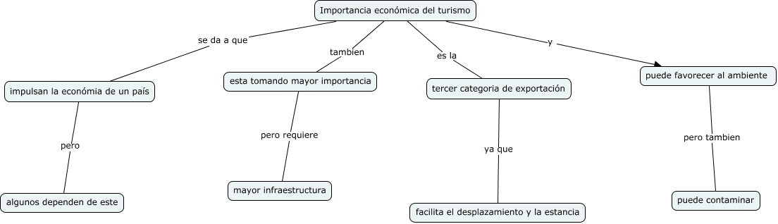 Este Cmap, tiene información relacionada con: Importancia economica, puede favorecer al ambiente pero tambien puede contaminar, Importancia económica del turismo tambien esta tomando mayor importancia, esta tomando mayor importancia pero requiere mayor infraestructura, tercer categoria de exportación ya que facilita el desplazamiento y la estancia, impulsan la económia de un país pero algunos dependen de este, Importancia económica del turismo se da a que impulsan la económia de un país, Importancia económica del turismo y puede favorecer al ambiente, Importancia económica del turismo es la tercer categoria de exportación