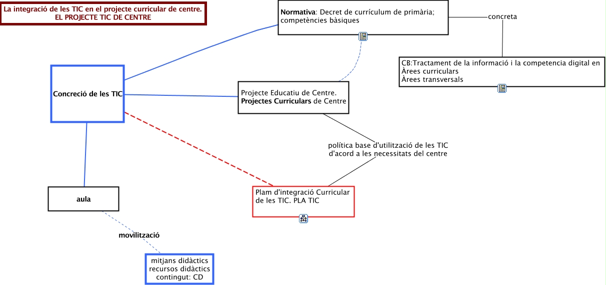 Este Cmap, tiene información relacionada con: M2-3nivells-concrecio1, Normativa: Decret de currículum de primària; competències bàsiques concreta CB:Tractament de la informació i la competencia digital en Àrees curriculars Àrees transversals, Projecte Educatiu de Centre. Projectes Curriculars de Centre política base d'utilització de les TIC d'acord a les necessitats del centre Plam d'integració Curricular de les TIC. PLA TIC, aula movilització mitjans didàctics recursos didàctics contingut: CD, Normativa: Decret de currículum de primària; competències bàsiques ???? Projecte Educatiu de Centre. Projectes Curriculars de Centre