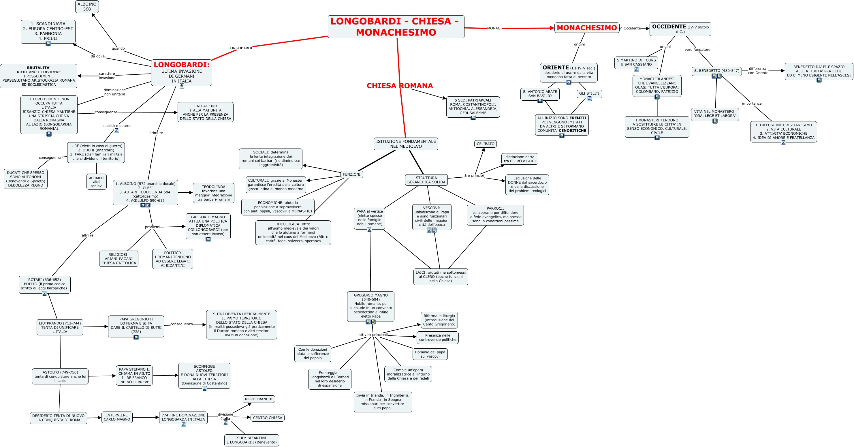 Questa Cmap, creata con IHMC CmapTools, contiene informazioni relative a: LONGOBARDI-CHIESA-MONACHESIMO, PAPA STEFANO II CHIAMA IN AIUTO IL RE FRANCO PIPINO IL BREVE SCONFIGGE ASTOLFO E DONA NUOVI TERRITORI ALLA CHIESA (Donazione di Costantino), LONGOBARDI: ULTIMA INVASIONE DI GERMANI IN ITALIA quando ALBOINO 568, 1. ALBOINO (572 anarchia ducale) 2. CLEFI 3. AUTARI-TEODOLINDA 584 (cattolicesimo) 4. AGILULFO 590-615 TEODOLINDA favorisce una maggior integrazione tra barbari-romani, MONACHESIMO in Occidente OCCIDENTE (IV-V secolo d.C.), ASTOLFO (749-756) tenta di conquistare anche lui il Lazio DESIDERIO TENTA DI NUOVO LA CONQUISTA DI ROMA, FUNZIONI IDEOLOGICA: offre all'uomo medievale dei valori che lo aiutano a formarsi un'identità nel caos del Medioevo (Alto): carità, fede, salvezza, speranza, LONGOBARDI - CHIESA - MONACHESIMO CHIESA ROMANA ISITUZIONE FONDAMENTALE NEL MEDIOEVO, IL LORO DOMINIO NON OCCUPA TUTTA L'ITALIA BISANZIO-CHIESA MANTIENE UNA STRISCIA CHE VA DALLA ROMAGNA AL LAZIO (LONGOBARDIA ROMANIA) conseguenze FINO AL 1861 ITALIA MAI UNITA ANCHE PER LA PRESENZA DELLO STATO DELLA CHIESA, ISITUZIONE FONDAMENTALE NEL MEDIOEVO STRUTTURA GERARCHICA SOLIDA, 1. RE (eletti in caso di guerra) 2. DUCHI (anarchici) 3. FARE (clan familiari militari che si dividono il territorio) arimanni aldii schiavi, LONGOBARDI: ULTIMA INVASIONE DI GERMANI IN ITALIA primi re 1. ALBOINO (572 anarchia ducale) 2. CLEFI 3. AUTARI-TEODOLINDA 584 (cattolicesimo) 4. AGILULFO 590-615, GLI STILITI ALL'INIZIO SONO EREMITI POI VENGONO IMITATI DA ALTRI E SI FORMANO COMUNITA' CENOBITICHE, 1. ALBOINO (572 anarchia ducale) 2. CLEFI 3. AUTARI-TEODOLINDA 584 (cattolicesimo) 4. AGILULFO 590-615 problemi GREGORIO MAGNO ATTUA UNA POLITICA DIPLOMATICA COI LONGOBARDI (per non essere invaso), 774 FINE DOMINAZIONE LONGOBARDA IN ITALIA divisione Italia CENTRO CHIESA, PARROCI: collaborano per diffondere la fede evangelica, ma spesso sono in condizioni pessime LAICI: aiutati ma sottomessi al CLERO (poche funzioni nella Chiesa), S. ANTONIO ABATE SAN BASILIO ALL'INIZIO SONO EREMITI POI VENGONO IMITATI DA ALTRI E SI FORMANO COMUNITA' CENOBITICHE, FUNZIONI ECONOMICHE: aiuta la popolazione a sopravvivere con aiuti papali, vescovili e MONASTICI, ROTARI (636-652) EDITTO (il primo codice scritto di leggi barbariche) LIUTPRANDO (712-744) TENTA DI UNIFICARE L'ITALIA, OCCIDENTE (IV-V secolo d.C.) origini S.MARTINO DI TOURS E SAN CASSIANO, LONGOBARDI - CHIESA - MONACHESIMO LONGOBARDI LONGOBARDI: ULTIMA INVASIONE DI GERMANI IN ITALIA