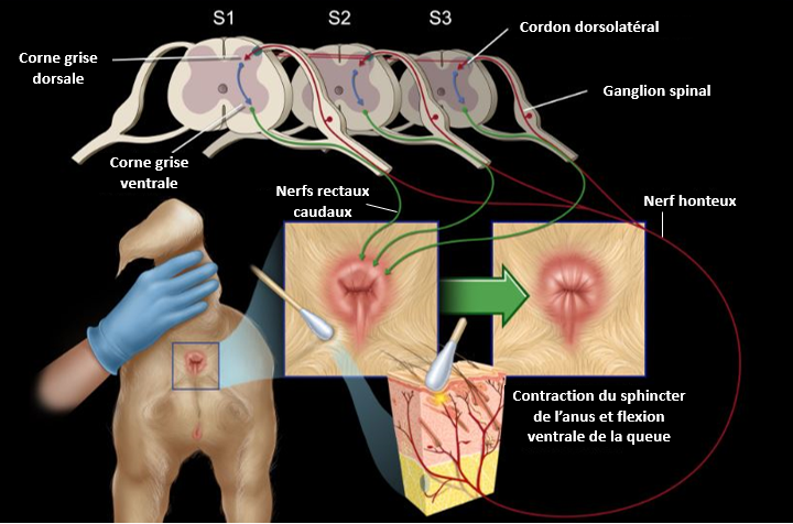 Réflexe cornéen ILLUSTRATION.PNG Réflexe d'évitement ILLUSTRATION.png Réflexe myotatique général ILLUSTRATION.png Réflexe palpébral ILLUSTRATION.PNG Réflexe panniculaire ILLUSTRATION.PNG Réflexe périnéal ILLUSTRATION.PNG Réflexe pupillaire ILLUSTRATION.PNG Réponse de reposionnement.PNG Test de la menace ILLUSTRATION.PNG