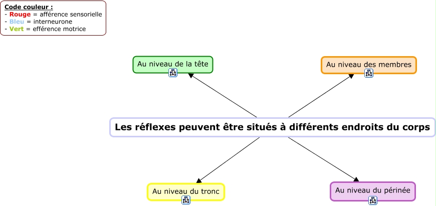 Cette carte de concepts créée avec IHMC CmapTools traite de: Carte 2 Différents endroits de réflexes, Les réflexes peuvent être situés à différents endroits du corps Au niveau du périnée, Les réflexes peuvent être situés à différents endroits du corps Au niveau de la tête, Les réflexes peuvent être situés à différents endroits du corps Au niveau du tronc, Les réflexes peuvent être situés à différents endroits du corps Au niveau des membres