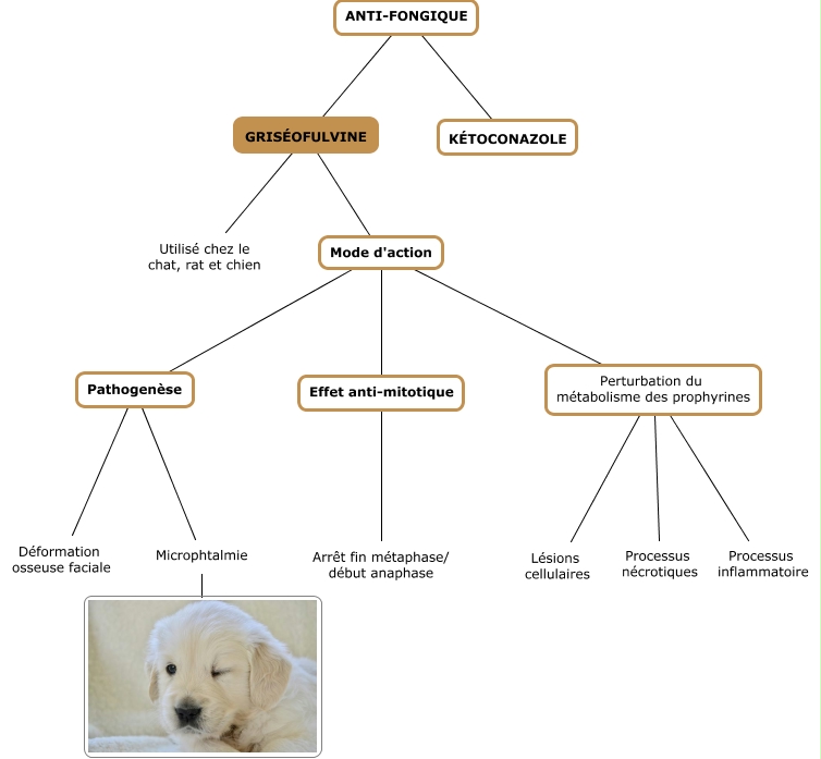Cette carte de concepts créée avec IHMC CmapTools traite de: Antifongique, GRISÉOFULVINE Utilisé chez le chat, rat et chien, ANTI-FONGIQUE KÉTOCONAZOLE, Mode d'action Pathogenèse, Perturbation du métabolisme des prophyrines Processus nécrotiques, Perturbation du métabolisme des prophyrines Processus inflammatoire, Mode d'action Effet anti-mitotique, Pathogenèse Déformation osseuse faciale, ANTI-FONGIQUE GRISÉOFULVINE, Perturbation du métabolisme des prophyrines Lésions cellulaires, Mode d'action Perturbation du métabolisme des prophyrines, Pathogenèse Microphtalmie, GRISÉOFULVINE Mode d'action, Effet anti-mitotique Arrêt fin métaphase/ début anaphase, Microphtalmie