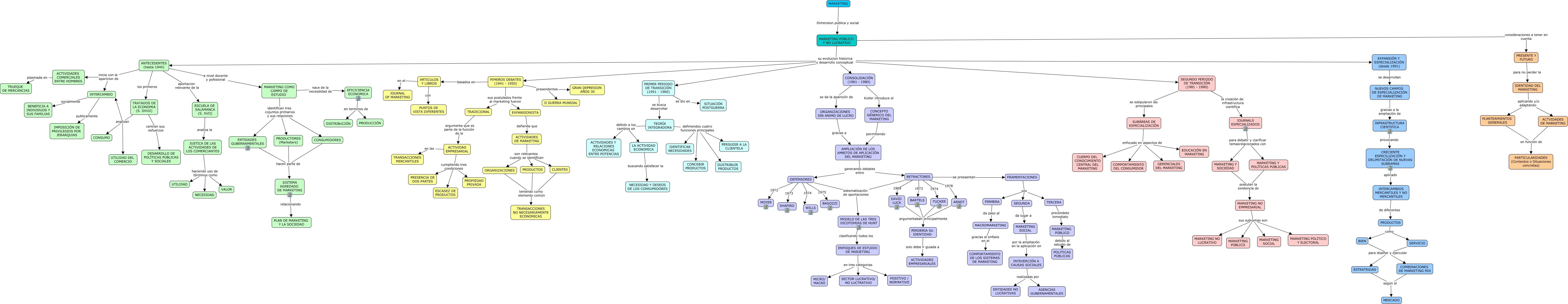Este Cmap, tiene información relacionada con: Marketing Público y No Lucrativo, ESCUELA DE SALAMANCA (S. XVII) analiza la JUSTICA DE LAS ACTIVIDADES DE LOS COMERCIANTES, JUSTICA DE LAS ACTIVIDADES DE LOS COMERCIANTES haciendo uso de términos como VALOR, FRAMENTACIONES son TERCERA, BIEN para diseñar y ejercutar COMBINACIONES DE MARKETING MIX, JUSTICA DE LAS ACTIVIDADES DE LOS COMERCIANTES haciendo uso de términos como UTILIDAD, MARKETING PÚBLICO Y NO LUCRATIVO su evolucion historica y desarrollo conceptual ANTECEDENTES (hasta 1940), ENTIDADES GUBERNAMENTALES hacen parte de SISTEMA AGREDADO DE MARKETING, ARNDT argumentaban principalmente PERDERIA SU IDENTIDAD, AMPLIACIÓN DE LOS AMBITOS DE APLICACIÓN DEL MARKETING generando debates entre DEFENSORES, TEORÍA INTEGRADORA definiendos cuatro funciones principales PERSUDIR A LA CLIENTELA, MARKETING NO EMPRESARIAL sus subramas son MARKETING POLÍTICO Y ELECTORAL, DAVID LUCK argumentaban principalmente PERDERIA SU IDENTIDAD, PRODUCTORES (Marketers) hacen parte de SISTEMA AGREDADO DE MARKETING, EXPANSIONISTA defienda que ACTIVIDADES DE MARKETING, SEGUNDO PERIODO DE TRANSICIÓN (1981 - 1990) la creación de infrastructura cientifica JOURNALS ESPECIALIZADOS, MARKETING PÚBLICO Y NO LUCRATIVO su evolucion historica y desarrollo conceptual CONSOLIDACIÓN (1961 - 1980), PRODUCTOS teniendo como elemento común TRANSACCIONES NO NECESARIAMENTE ECONOMICAS, INTEVERCIÓN A CAUSAS SOCIALES realizadas por ENTIDADES NO LUCRATIVAS, TRATADOS DE LA ECONOMIA (S. SXVII) centran sus esfuerzos DESARROLLO DE POLÍTICAS PÚBLICAS Y SOCIALES, TUCKER argumentaban principalmente PERDERIA SU IDENTIDAD