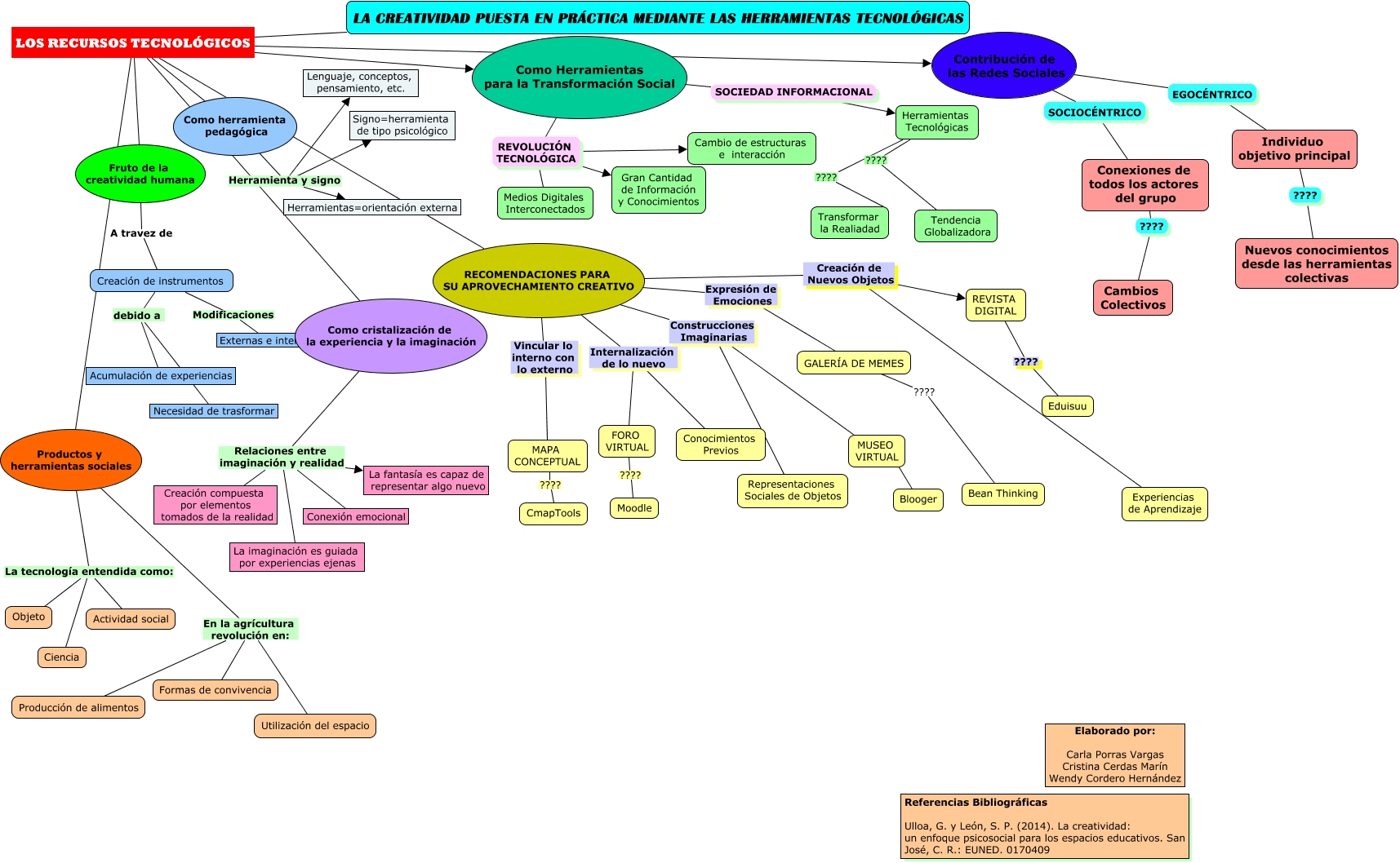 Este Cmap, tiene información relacionada con: HERRAMIENTAS Creatividad, Individuo objetivo principal ???? Nuevos conocimientos desde las herramientas colectivas, Como herramienta pedagógica Herramienta y signo Herramientas=orientación externa, Como Herramientas para la Transformación Social REVOLUCIÓN TECNOLÓGICA Cambio de estructuras e interacción, Contribución de las Redes Sociales SOCIOCÉNTRICO Conexiones de todos los actores del grupo, LA CREATIVIDAD PUESTA EN PRÁCTICA MEDIANTE LAS HERRAMIENTAS TECNOLÓGICAS LOS RECURSOS TECNOLÓGICOS Contribución de las Redes Sociales, RECOMENDACIONES PARA SU APROVECHAMIENTO CREATIVO Creación de Nuevos Objetos Experiencias de Aprendizaje, Herramientas Tecnológicas ???? Transformar la Realiadad, LA CREATIVIDAD PUESTA EN PRÁCTICA MEDIANTE LAS HERRAMIENTAS TECNOLÓGICAS LOS RECURSOS TECNOLÓGICOS Como Herramientas para la Transformación Social, RECOMENDACIONES PARA SU APROVECHAMIENTO CREATIVO Internalización de lo nuevo Conocimientos Previos, MAPA CONCEPTUAL ???? CmapTools, RECOMENDACIONES PARA SU APROVECHAMIENTO CREATIVO Vincular lo interno con lo externo MAPA CONCEPTUAL, REVISTA DIGITAL ???? Eduisuu, Conexiones de todos los actores del grupo ???? Cambios Colectivos, Como herramienta pedagógica Herramienta y signo Lenguaje, conceptos, pensamiento, etc., MUSEO VIRTUAL ???? Blooger, Productos y herramientas sociales La tecnología entendida como: Ciencia, Como cristalización de la experiencia y la imaginación Relaciones entre imaginación y realidad La fantasía es capaz de representar algo nuevo, FORO VIRTUAL ???? Moodle, Creación de instrumentos debido a Acumulación de experiencias, LA CREATIVIDAD PUESTA EN PRÁCTICA MEDIANTE LAS HERRAMIENTAS TECNOLÓGICAS LOS RECURSOS TECNOLÓGICOS Fruto de la creatividad humana