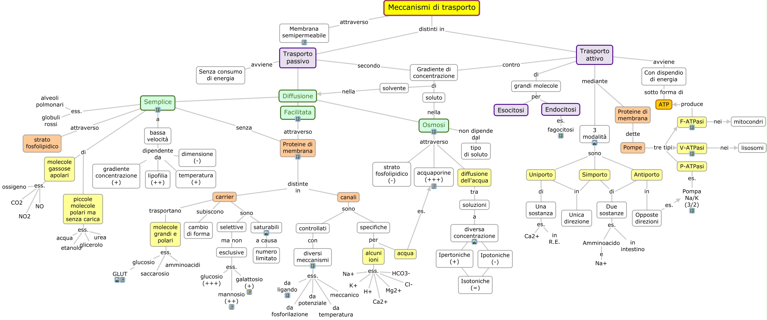 Questa Cmap, creata con IHMC CmapTools, contiene informazioni relative a: Meccanismi di trasporto, Proteine di membrana distinte in canali, alcuni ioni ess. Na+, Meccanismi di trasporto distinti in Trasporto attivo, piccole molecole polari ma senza carica ess. etanolo, Diffusione Semplice, saturabili a causa numero limitato, Meccanismi di trasporto attraverso Membrana semipermeabile, 3 modalità sono Antiporto, acqua es. acquaporine (+++), carrier sono selettive, Osmosi non dipende dal tipo di soluto, selettive ma non esclusive, grandi molecole per Endocitosi, Trasporto attivo mediante Proteine di membrana, 3 modalità sono Simporto, Diffusione Facilitata, solvente nella Diffusione, alcuni ioni ess. Ca2+, Osmosi attraverso acquaporine (+++), alcuni ioni ess. Cl-