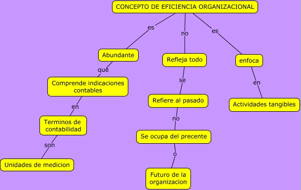 Este Cmap, tiene información relacionada con: 14 CONCEPTO DE EFICIENCIA ORGANIZACIONAL.cmap, Refiere al pasado no Se ocupa del precente, CONCEPTO DE EFICIENCIA ORGANIZACIONAL no Refleja todo, CONCEPTO DE EFICIENCIA ORGANIZACIONAL es enfoca, Se ocupa del precente o Futuro de la organizacion, Terminos de contabilidad son Unidades de medicion, CONCEPTO DE EFICIENCIA ORGANIZACIONAL es Abundante, Comprende indicaciones contables en Terminos de contabilidad, Refleja todo se Refiere al pasado, enfoca en Actividades tangibles, Abundante que Comprende indicaciones contables