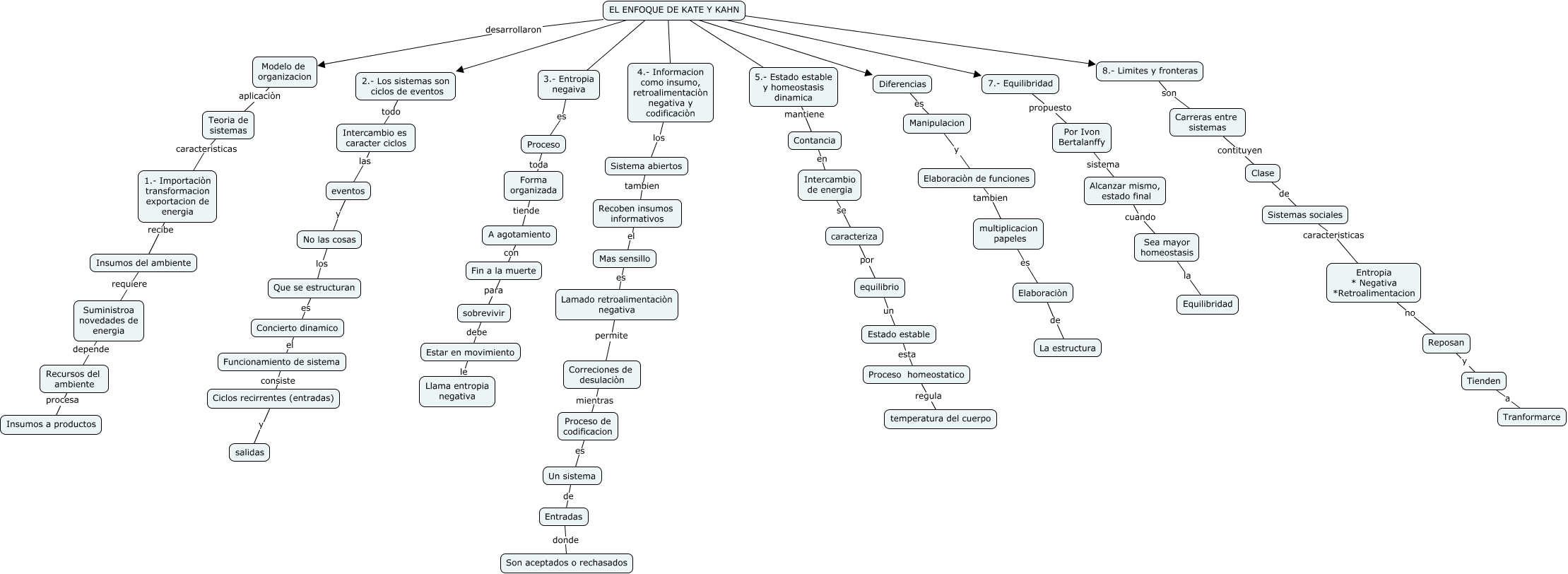 Este Cmap, tiene información relacionada con: EL ENFOQUE DE KATE Y KAHN.cmap, Clase de Sistemas sociales, Concierto dinamico el Funcionamiento de sistema, Que se estructuran es Concierto dinamico, 4.- Informacion como insumo, retroalimentaciòn negativa y codificaciòn los Sistema abiertos, Lamado retroalimentaciòn negativa permite Correciones de desulaciòn, No las cosas los Que se estructuran, Recursos del ambiente procesa Insumos a productos, sobrevivir debe Estar en movimiento, Suministroa novedades de energia depende Recursos del ambiente, Sea mayor homeostasis la Equilibridad, Recoben insumos informativos el Mas sensillo, EL ENFOQUE DE KATE Y KAHN ???? 2.- Los sistemas son ciclos de eventos, Correciones de desulaciòn mientras Proceso de codificacion, EL ENFOQUE DE KATE Y KAHN ???? 5.- Estado estable y homeostasis dinamica, Funcionamiento de sistema consiste Ciclos recirrentes (entradas), EL ENFOQUE DE KATE Y KAHN ???? 7.- Equilibridad, Sistemas sociales caracteristicas Entropia * Negativa *Retroalimentacion, Proceso homeostatico regula temperatura del cuerpo, Elaboraciòn de La estructura, EL ENFOQUE DE KATE Y KAHN ???? 4.- Informacion como insumo, retroalimentaciòn negativa y codificaciòn