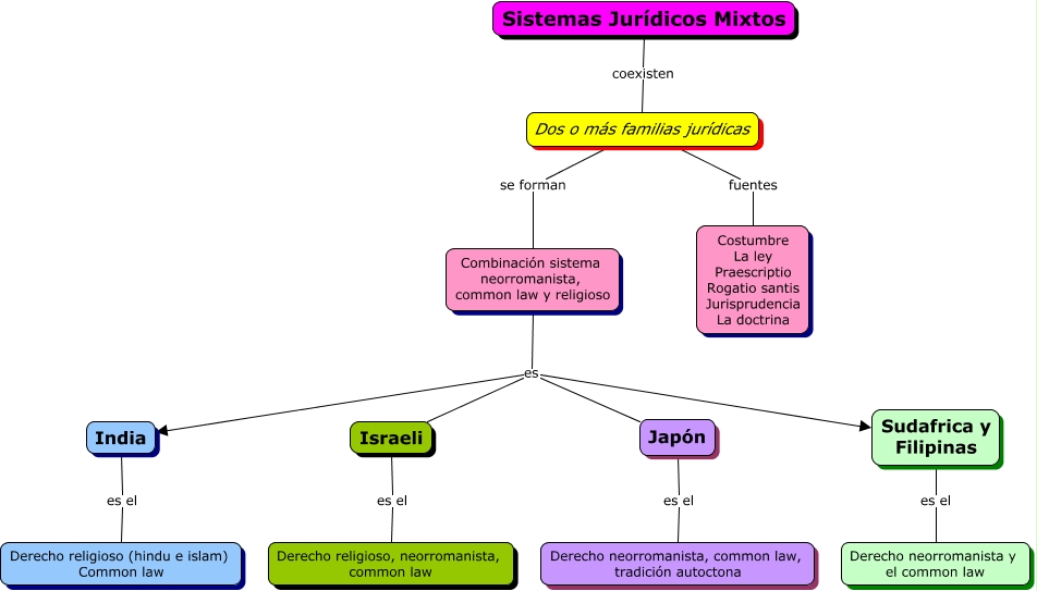 Este Cmap, tiene información relacionada con: SISTEMA JURÍDICO MIXTO ISRAELI,SUDÁFRICA,INDIA Y JAPÓN, Dos o más familias jurídicas fuentes Costumbre La ley Praescriptio Rogatio santis Jurisprudencia La doctrina, Combinación sistema neorromanista, common law y religioso es Sudafrica y Filipinas, Combinación sistema neorromanista, common law y religioso es Israeli, Dos o más familias jurídicas se forman Combinación sistema neorromanista, common law y religioso, Combinación sistema neorromanista, common law y religioso es India, Japón es el Derecho neorromanista, common law, tradición autoctona, Israeli es el Derecho religioso, neorromanista, common law, Sudafrica y Filipinas es el Derecho neorromanista y el common law, Combinación sistema neorromanista, common law y religioso es Japón, Sistemas Jurídicos Mixtos coexisten Dos o más familias jurídicas, India es el Derecho religioso (hindu e islam) Common law