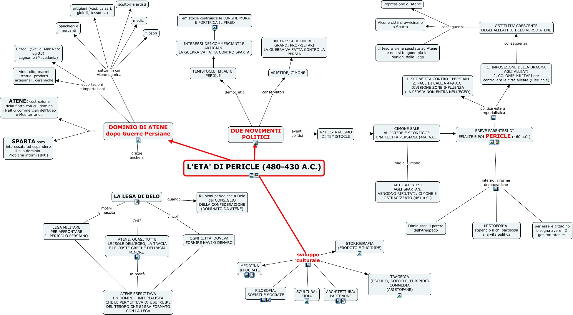 Questa Cmap, creata con IHMC CmapTools, contiene informazioni relative a: L'ETA' DI PERICLE (480-430 A.C.), LA LEGA DI DELO quando Riunioni periodiche a Delo del CONSIGLIO DELLA CONFEDERAZIONE (DOMINATO DA ATENE), OSTITLITA' CRESCENTE DEGLI ALLEATI DI DELO VERSO ATENE conseguenze Il tesoro viene spostato ad Atene e non si tengono più le riunioni della Lega, 471 OSTRACISMO DI TEMISTOCLE CIMONE SALE AL POTERE E SCONFIGGE UNA FLOTTA PERSIANA (466 A.C.), LA LEGA DI DELO CHI? ATENE, QUASI TUTTE LE ISOLE DELL'EGEO, LA TRACIA E LE COSTE GRECHE DELL'ASIA MINORE, CIMONE SALE AL POTERE E SCONFIGGE UNA FLOTTA PERSIANA (466 A.C.) fine di Cimone AIUTI ATENIESI AGLI SPARTANI VENGONO RIFIUTATI: CIMONE E' OSTRACIZZATO (461 a.C.), INTERESSI DEI COMMERCIANTI E ARTIGIANI LA GUERRA VA FATTA CONTRO SPARTA Temistocle costruisce le LUNGHE MURA E FORTIFICA IL PIREO, BREVE PARENTESI DI EFIALTE E POI PERICLE (460 a.C.) politica estera imperialistica 1. SCONFITTA CONTRO I PERSIANI 2. PACE DI CALLIA 449 A.C. DIVISIONE ZONE INFLUENZA (LA PERSIA NON ENTRA NELL'EGEO), L'ETA' DI PERICLE (480-430 A.C.) sviluppo culturale ARCHITETTURA: PARTENONE, LA LEGA DI DELO motivi di nascita LEGA MILITARE PER AFFRONTARE IL PERICOLO PERSIANO, DUE MOVIMENTI POLITICI democratici TEMISTOCLE, EFIALTE, PERICLE, DOMINIO DI ATENE dopo Guerre Persiane settori in cui Atene domina medici, BREVE PARENTESI DI EFIALTE E POI PERICLE (460 a.C.) interno: riforme democratiche Diminuisce il potere dell'Areopago, TEMISTOCLE, EFIALTE, PERICLE INTERESSI DEI COMMERCIANTI E ARTIGIANI LA GUERRA VA FATTA CONTRO SPARTA, DOMINIO DI ATENE dopo Guerre Persiane settori in cui Atene domina filosofi, L'ETA' DI PERICLE (480-430 A.C.) sviluppo culturale STORIOGRAFIA (ERODOTO E TUCIDIDE), OSTITLITA' CRESCENTE DEGLI ALLEATI DI DELO VERSO ATENE conseguenze Alcune città si avvicinano a Sparta, ARISTIDE, CIMONE INTERESSI DEI NOBILI GRANDI PROPRIETARI LA GUERRA VA FATTA CONTRO LA PERSIA, CIMONE SALE AL POTERE E SCONFIGGE UNA FLOTTA PERSIANA (466 A.C.) BREVE PARENTESI DI EFIALTE E POI PERICLE (460 a.C.), DOMINIO DI ATENE dopo Guerre Persiane settori in cui Atene domina scultori e artisti, L'ETA' DI PERICLE (480-430 A.C.) sviluppo culturale TRAGEDIA (ESCHILO, SOFOCLE, EURIPIDE) COMMEDIA (ARISTOFANE)